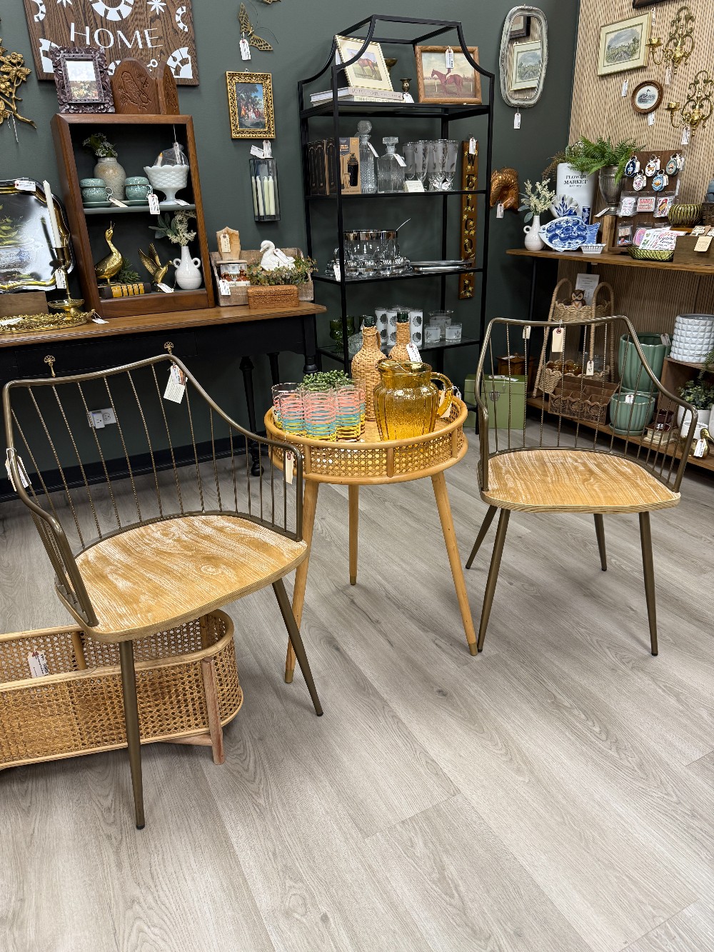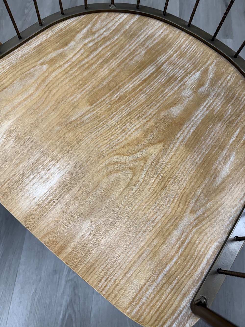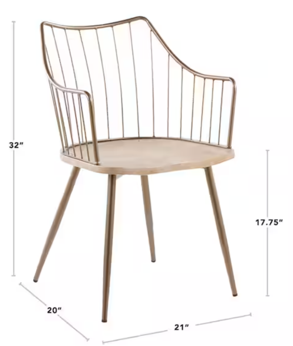 An updated look of a classic design! A metal frame and spindles define the arched backrest, while tapered legs and a wood seat complete the look. Great for use as a dining or accent chair.