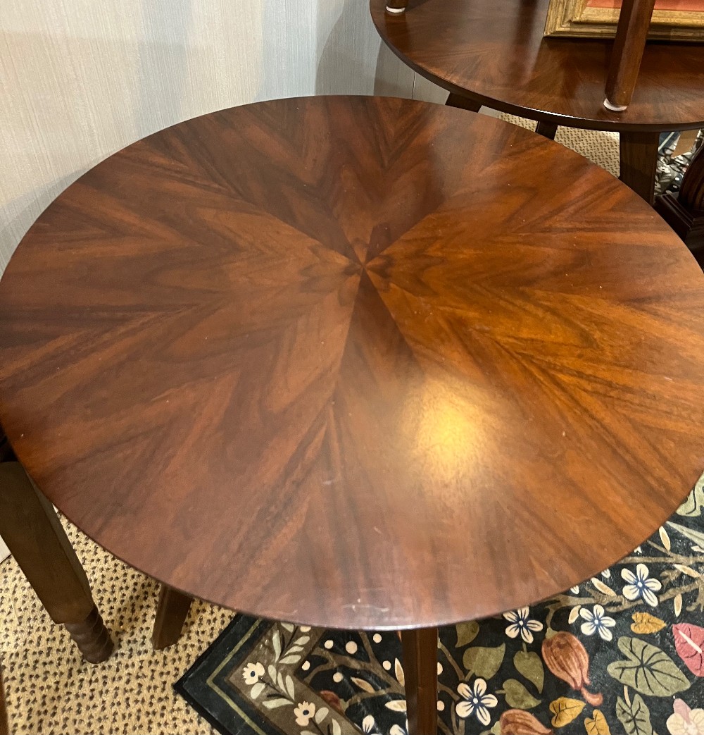 MCM Casana brand side table with simple elegant shape and gorgeous top design. Three available. Phenomenal price!