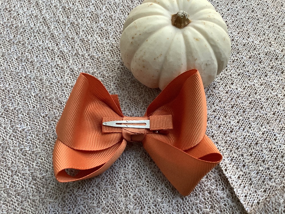 Grosgrain ribbon bow is 4” and made on a pinch clip.