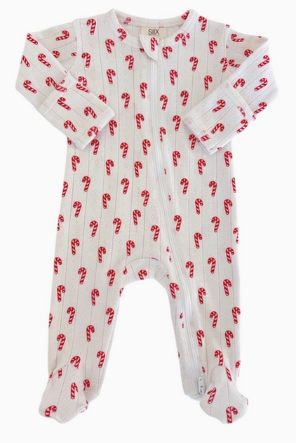 100% Certified Organic Cotton baby footies with 2-way zip for easy diaper changes. Adorable festive designs!