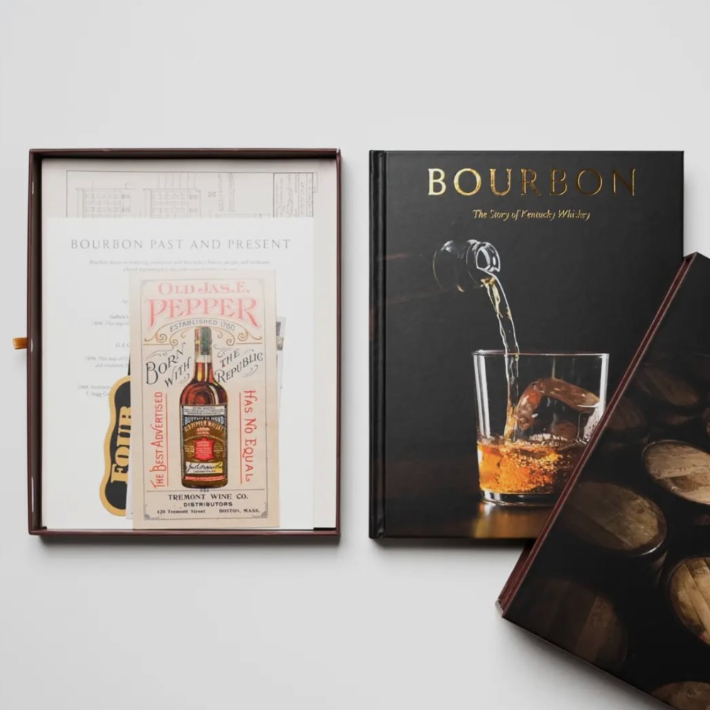 The one-of-a-kind boxed set features a pull-out drawer that holds beautifully reproduced distillery maps and blueprints, rare bottle labels, and historical photographs.