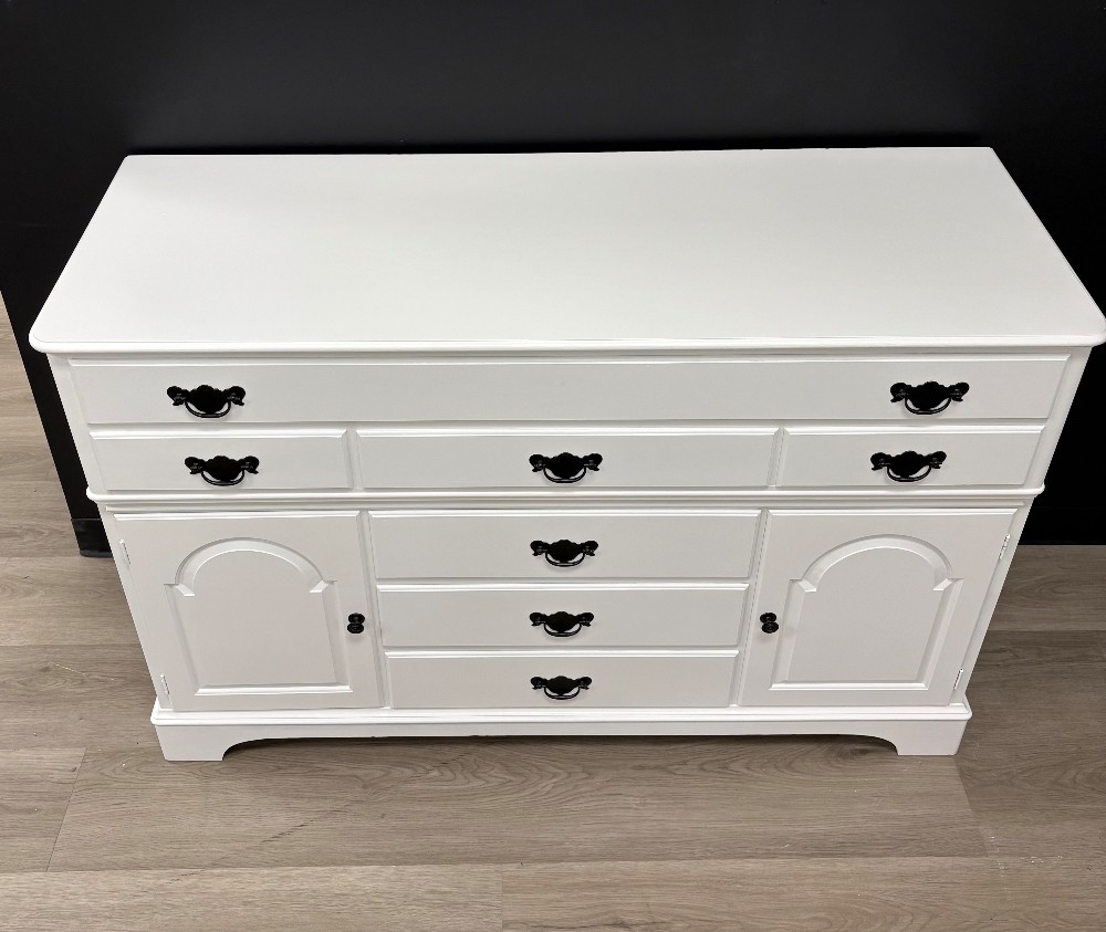 Beautiful, solid wood buffet/sideboard finished with Benjamin Moore Advance in White.54x20 & 35.5 tall