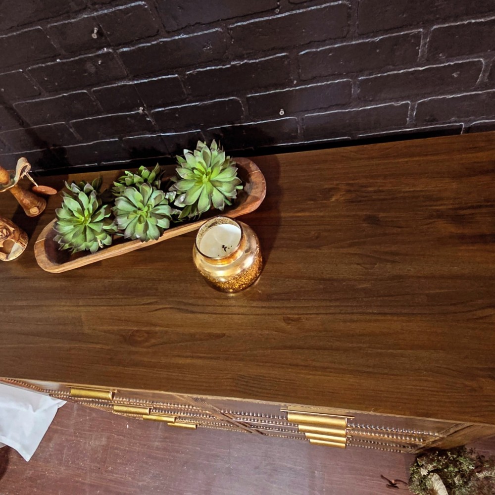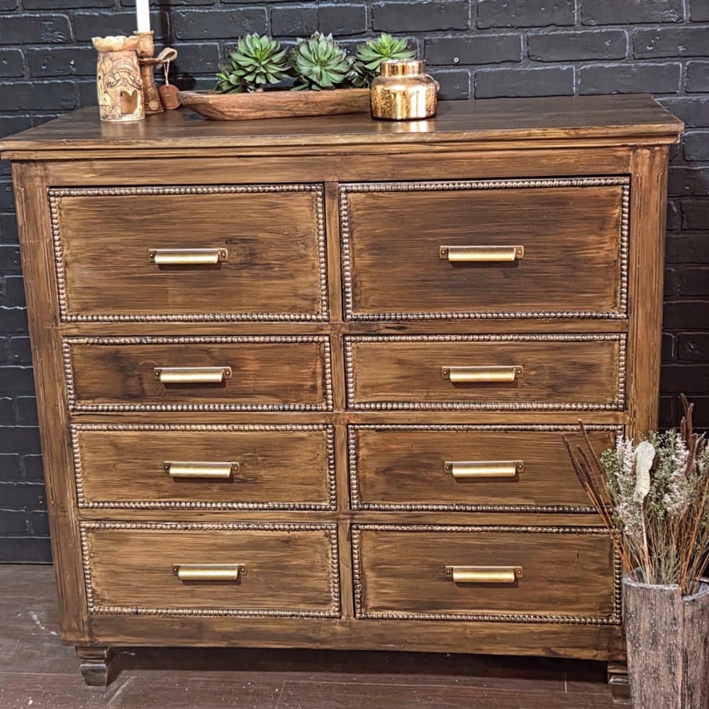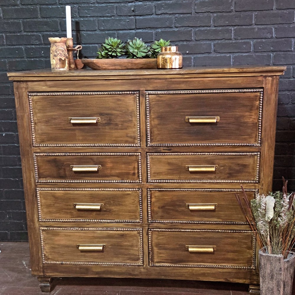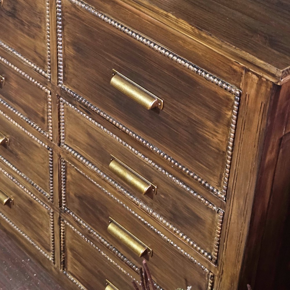 This handmade dresser got new bottom, new top and all beaded details. It was completely sanded, cleaned and paint washed before dark walnut stain applied. Sealed in a satin poly. All drawers in excellent working condition and fully lined. New hardware as well as new legs.