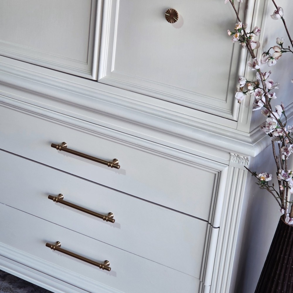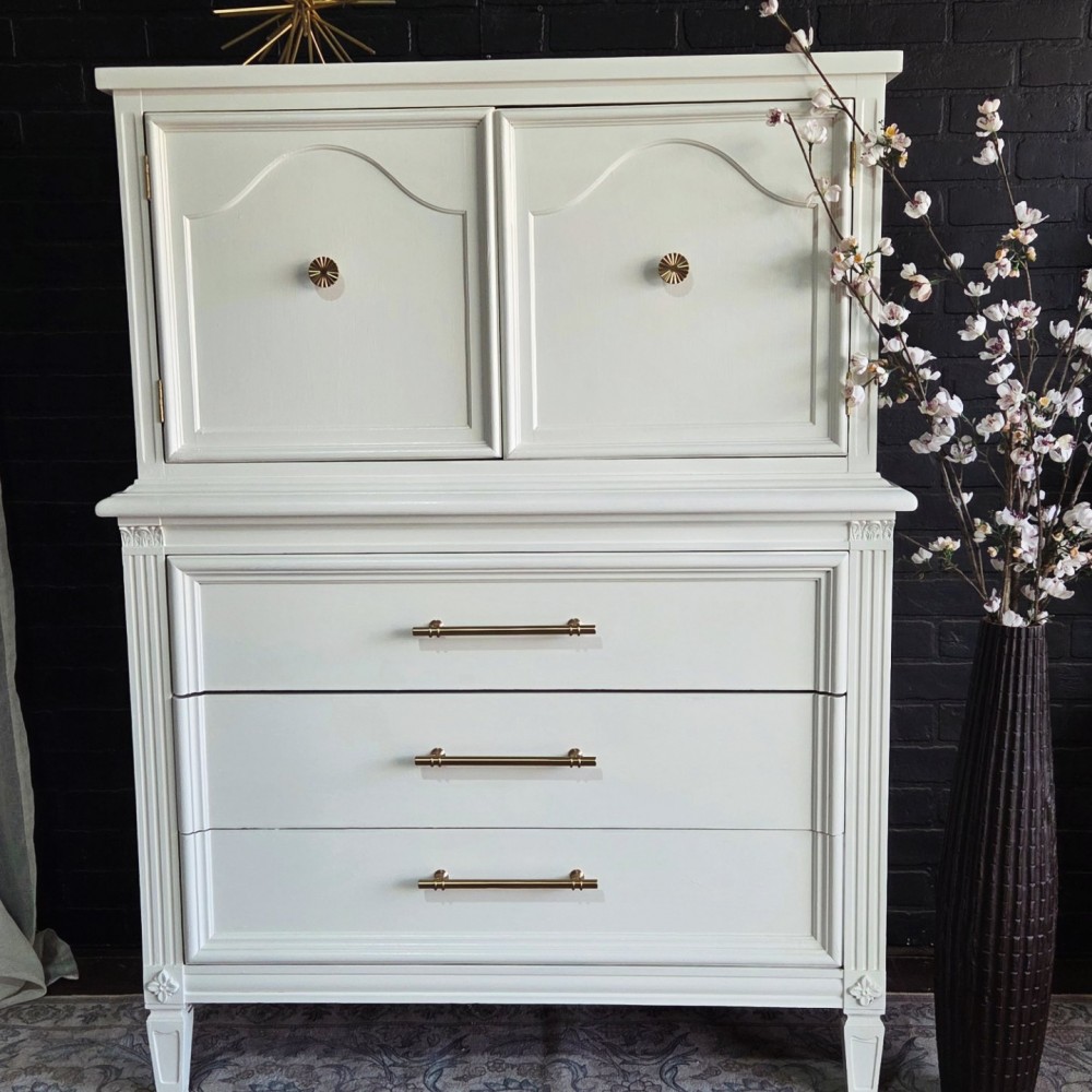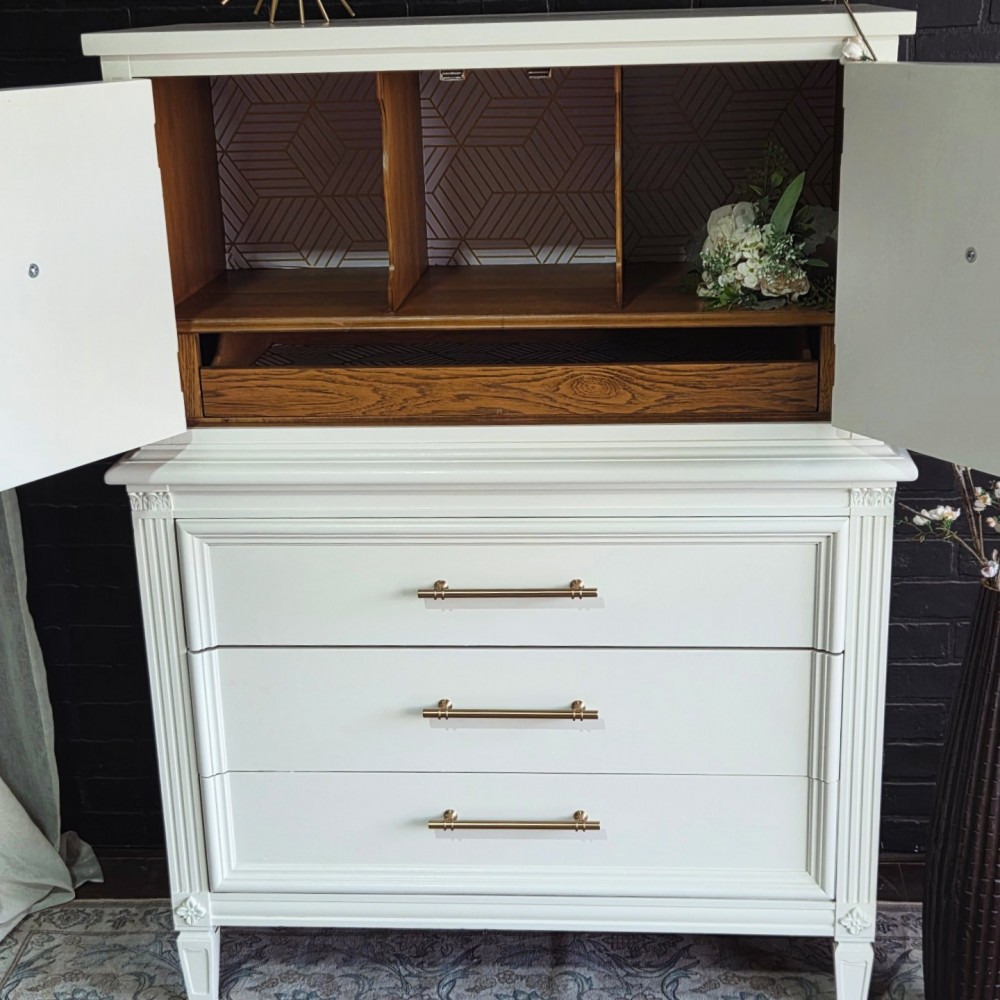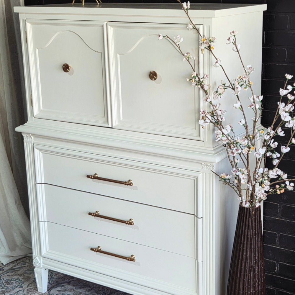 Painted in Fusion Mineral Paint #victorianlace and sealed in satin poly for durability and protection. Top part Inside cleaned and polished with furniture salve.