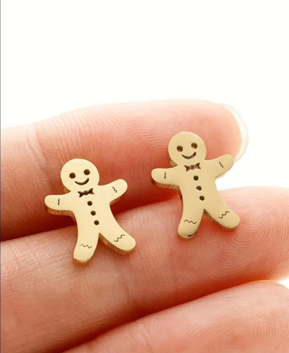 Home / Earrings / Gold Gingerbread Man Stud Earrings