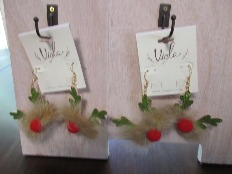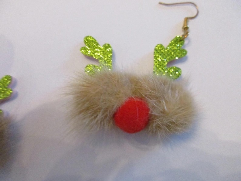 Cute Brown Fur Head with Red Nose and Green Antlers that Sparkle