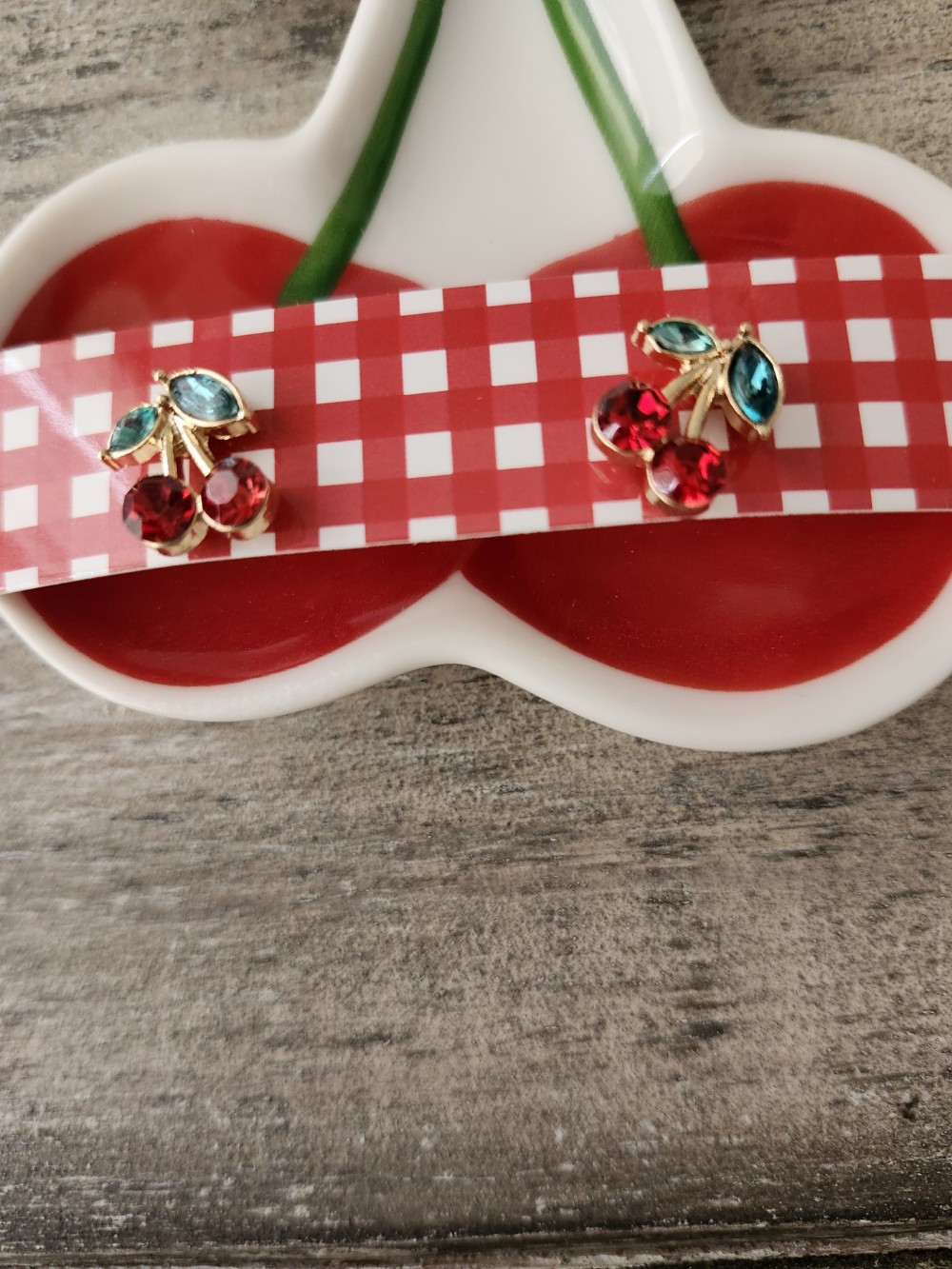 Stud Earrings - Cherries with Ceramic Cherry Dish