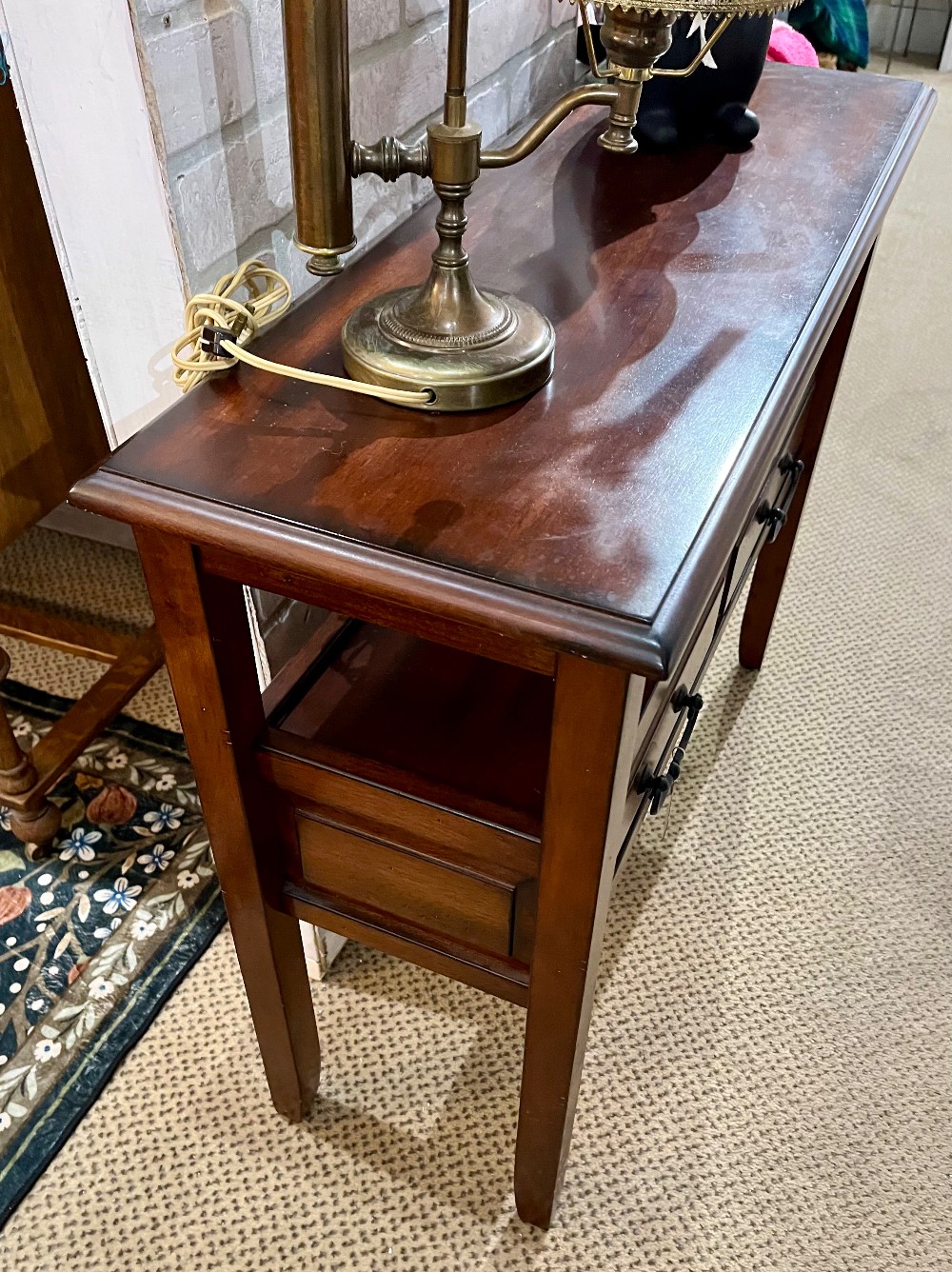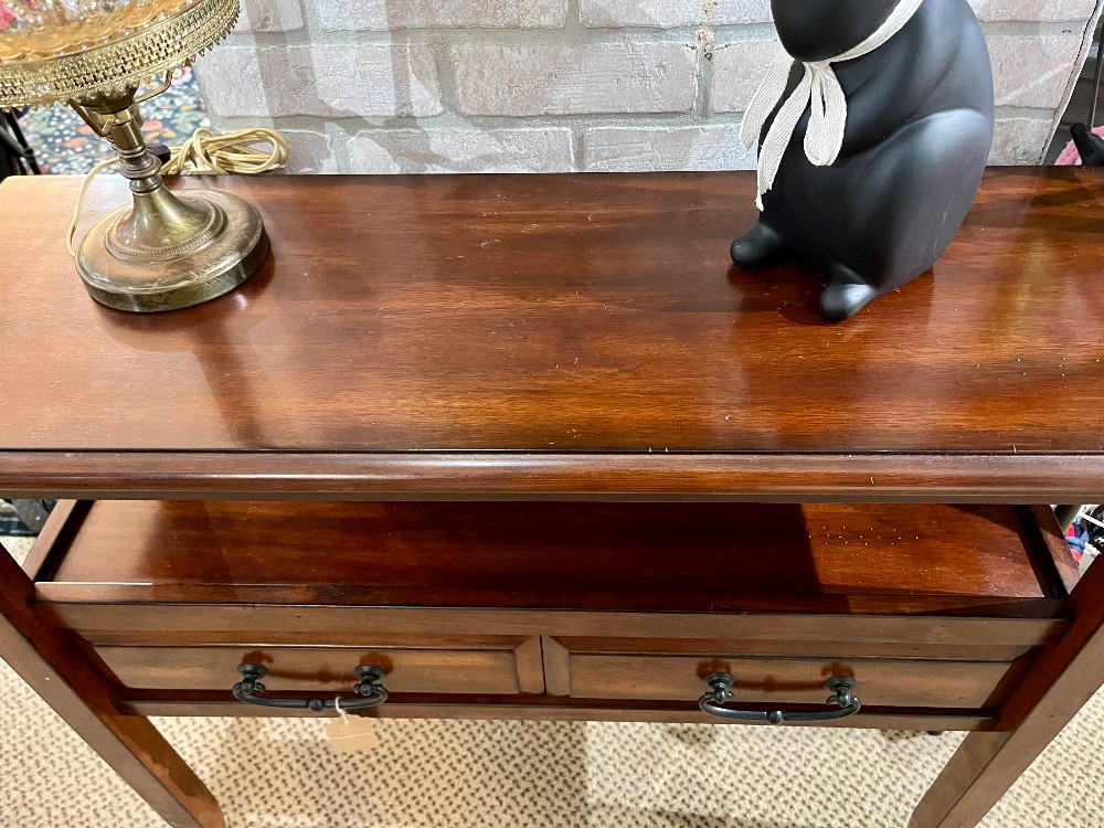 Console table 36” x 13 1/8” x 28.5” h with shelf and two drawers