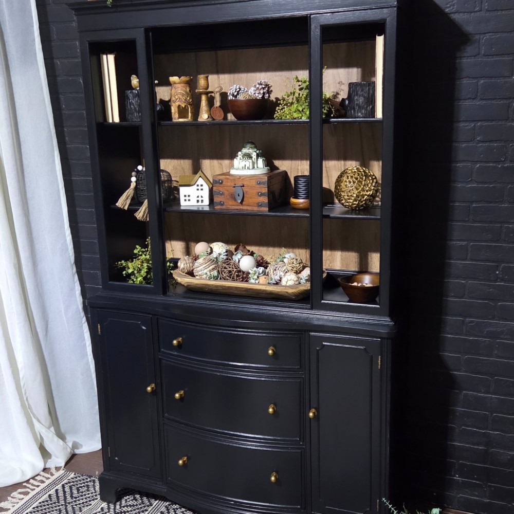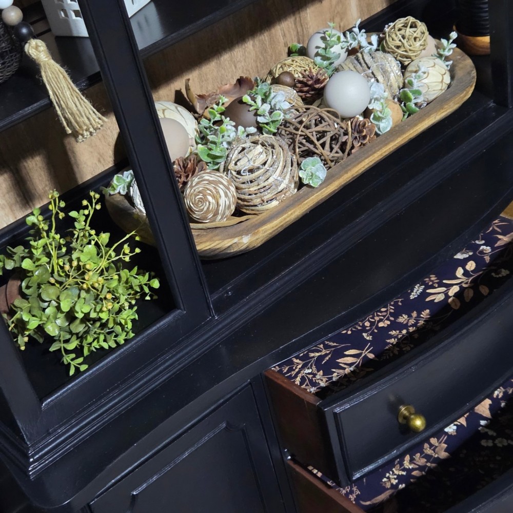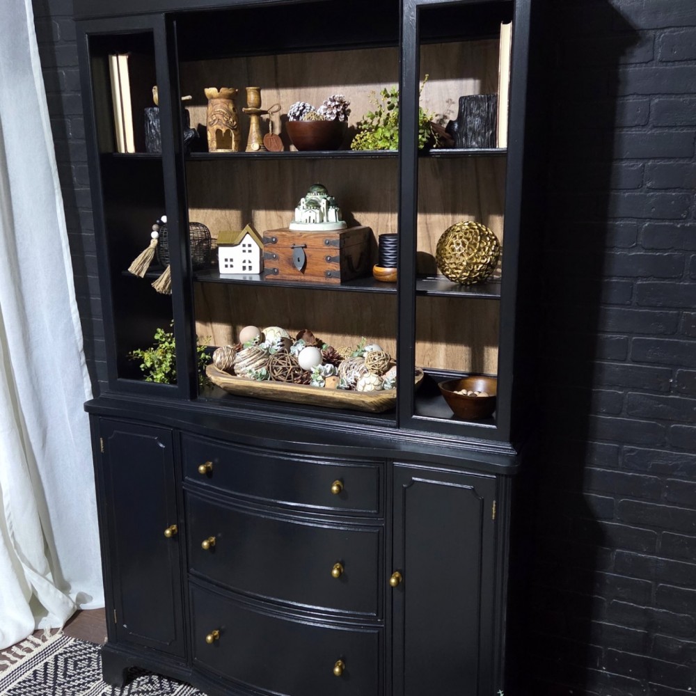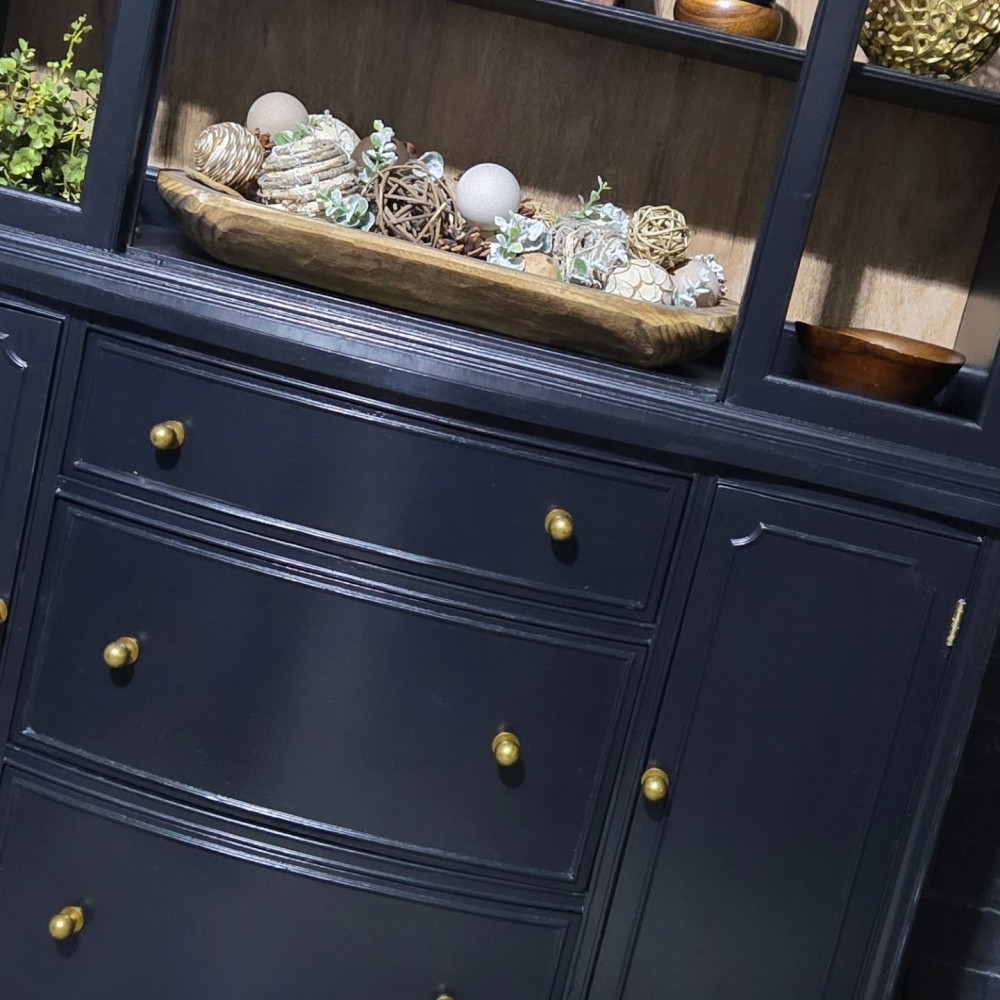 Painted in fusionmineralpaint coal black. Sealed in satin poly. Faux wood back liner installed.