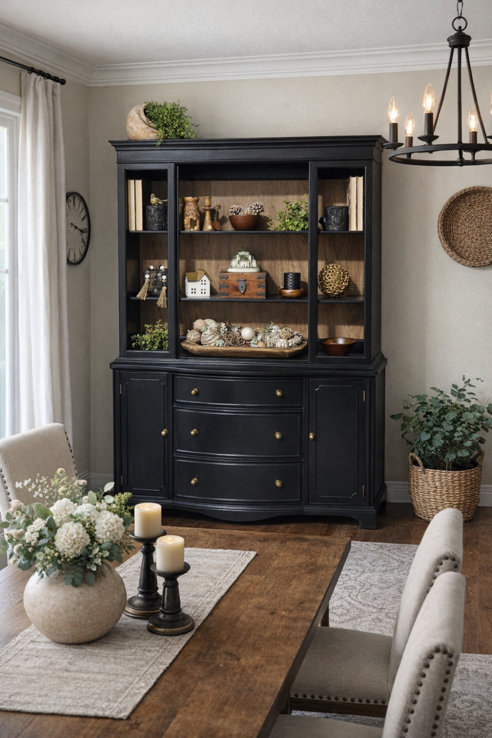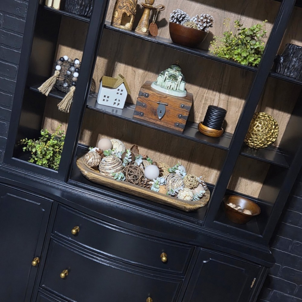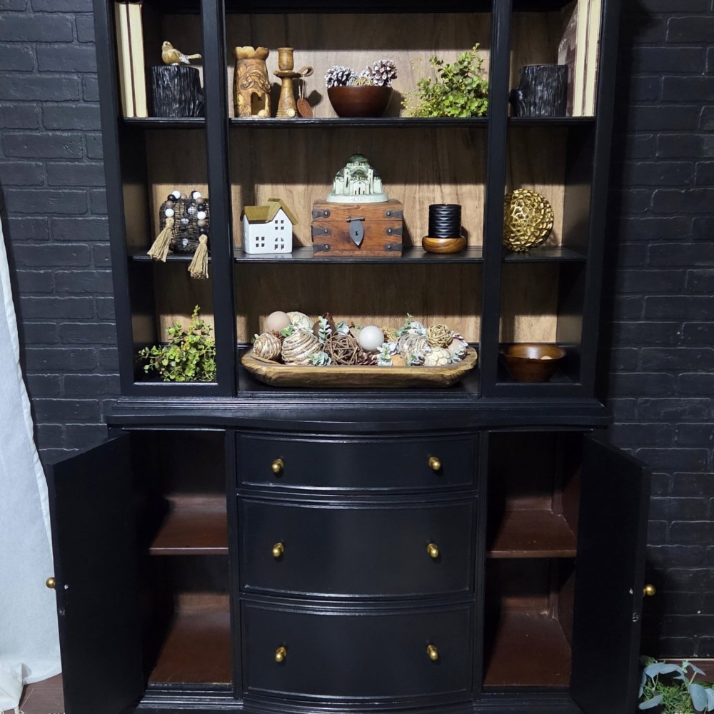 Painted in fusionmineralpaint coal black. Sealed in satin poly. Faux wood back liner installed.