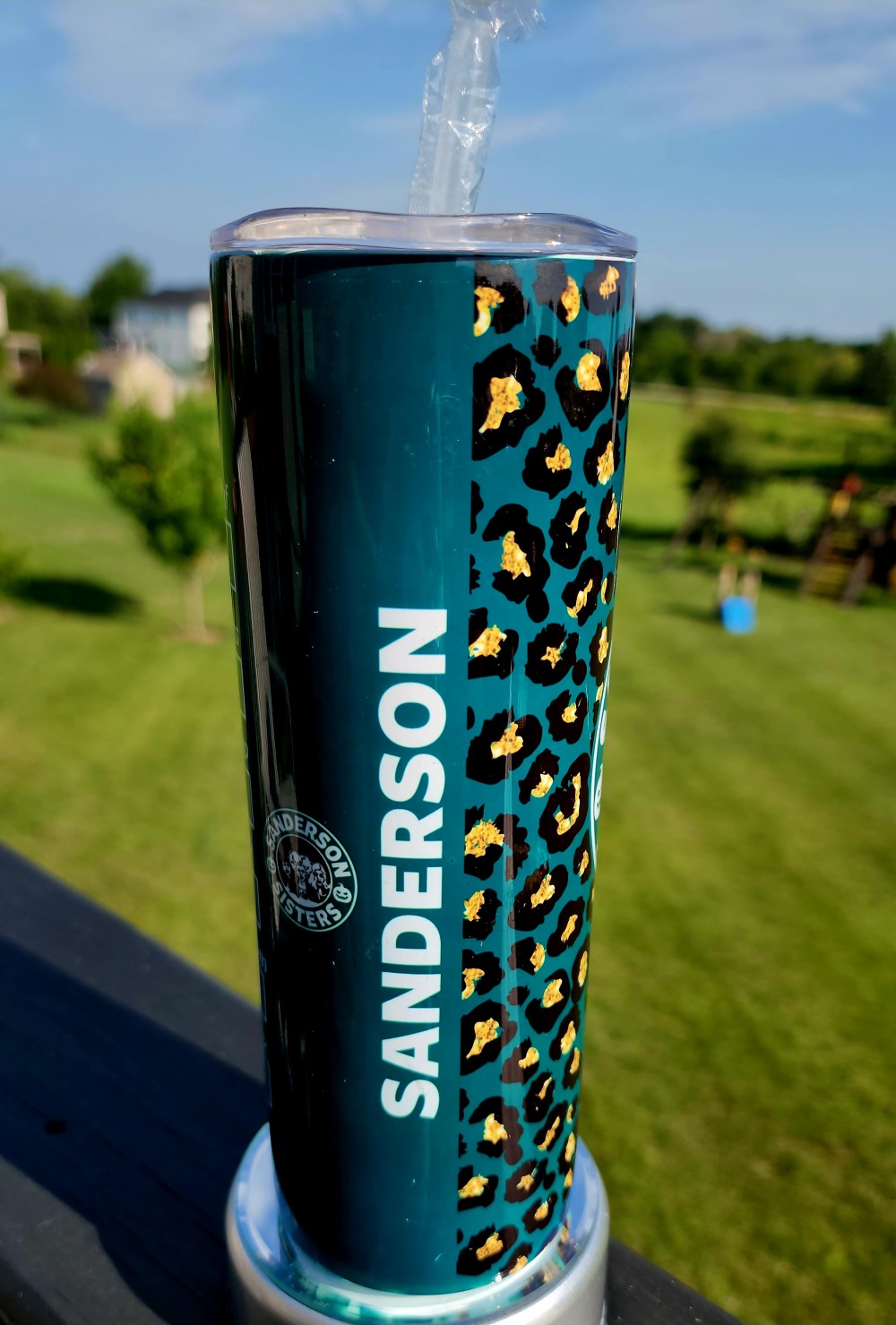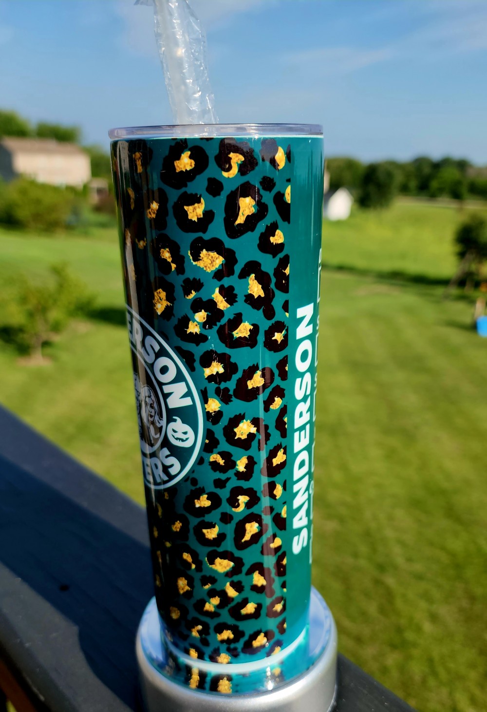 Sanderson sisters green cheetah print 20oz Sub tumbler with straw