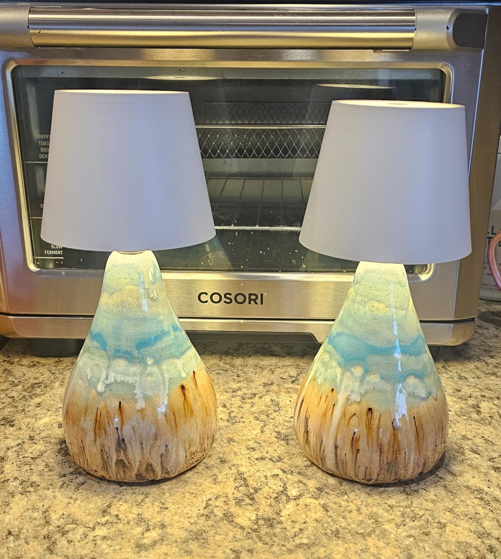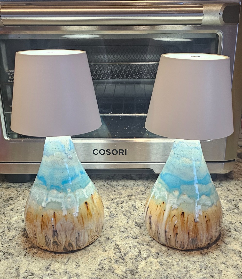 Beach themed lamps with 3 brightness options; rechargeable lamp shades (ask for shade boxes w/ chargers)