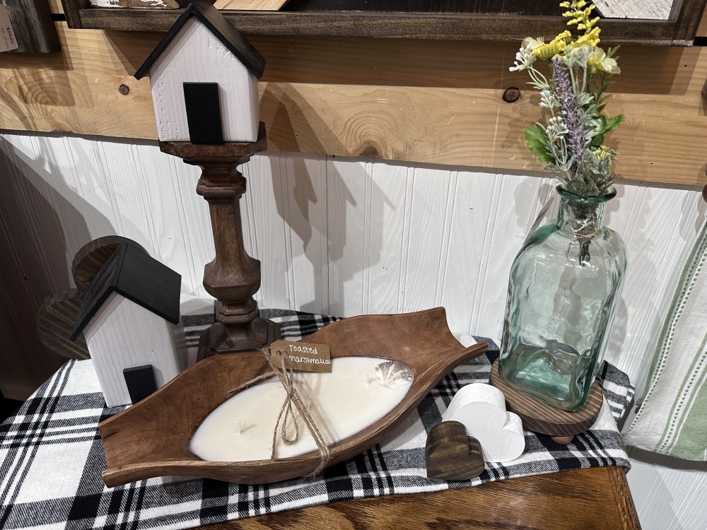This candle was created by Three Rooker Collections. They used a unique vessel filled with 100% soy wax and marshmallow, ember, and oak essential oils. The seashells included were brought from Three Rooker Island in Florida!