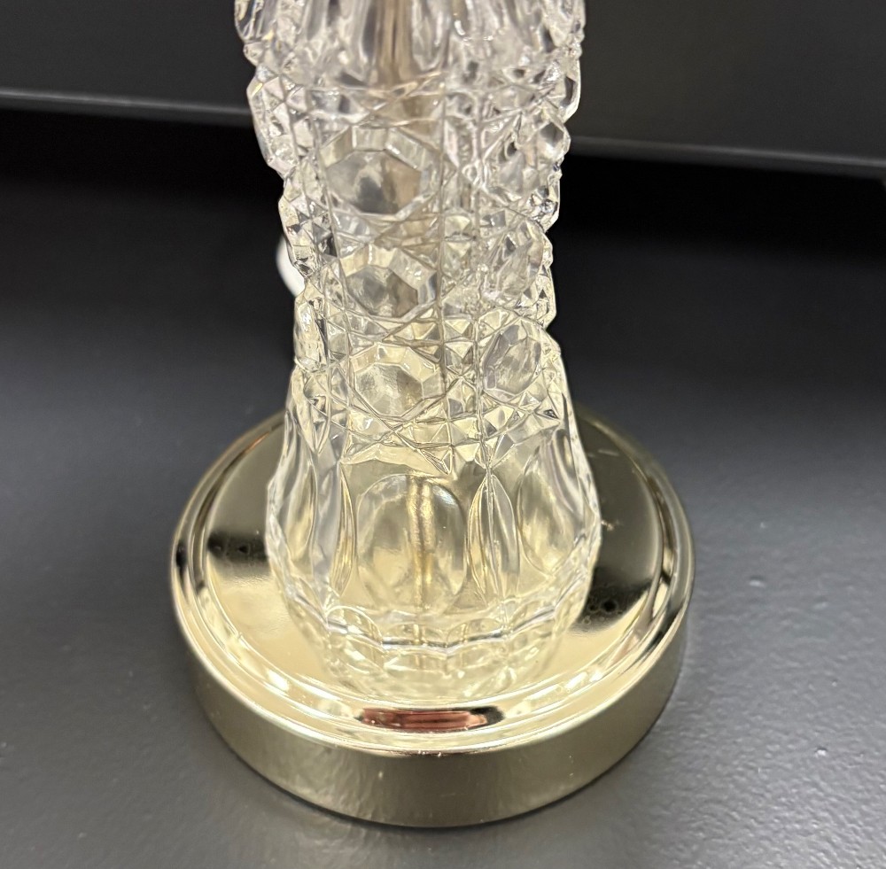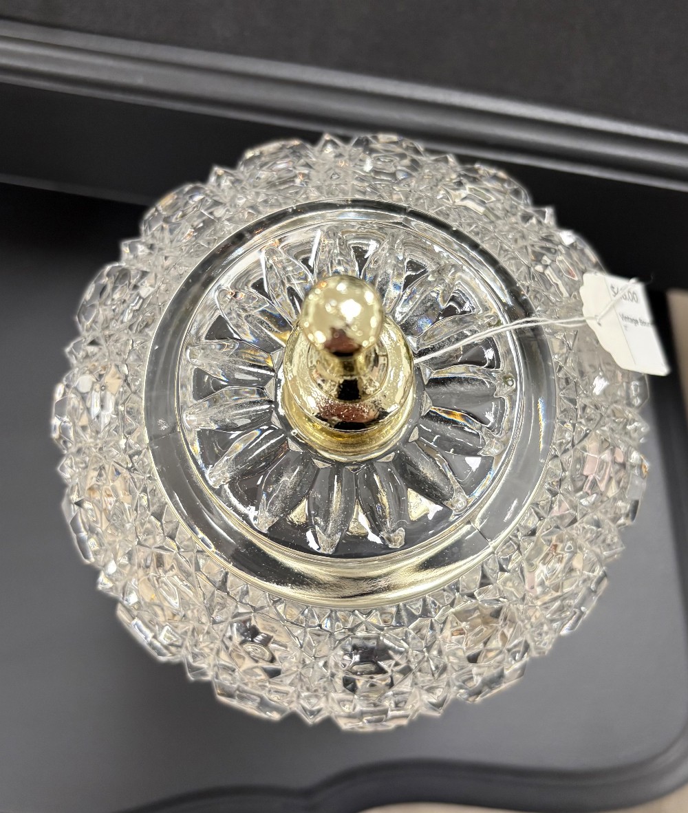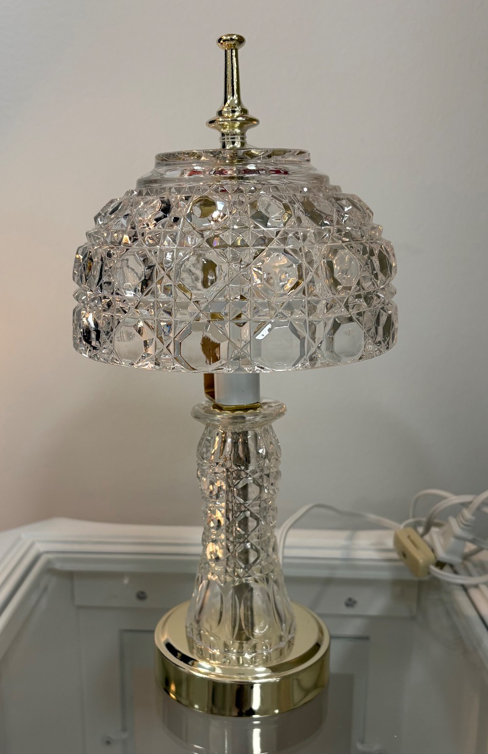 Federal Glass Crystal Boudoir Lamp, Button and Cane Crystal in Gorgeous condition. 12” tall and base of shade is 6”.