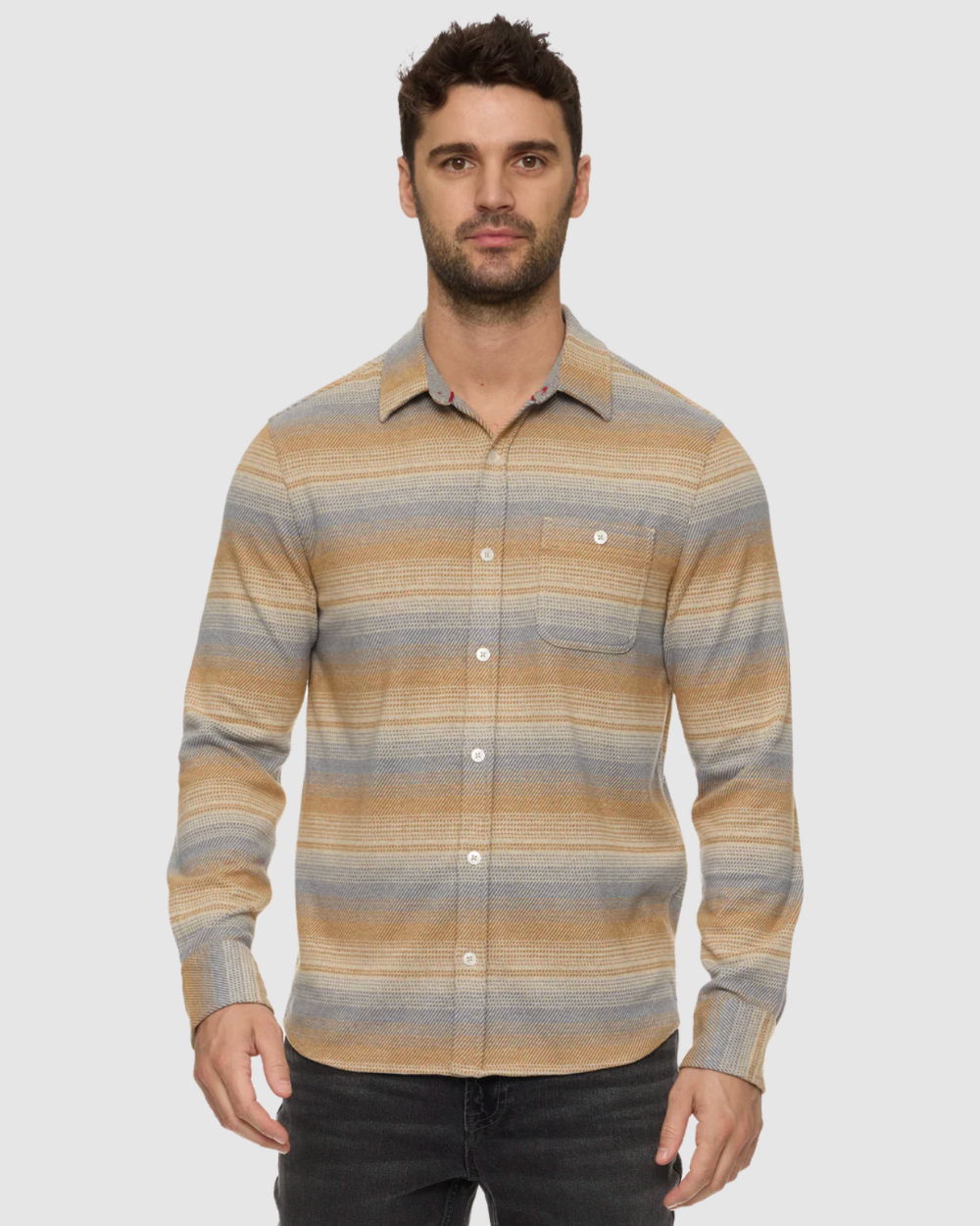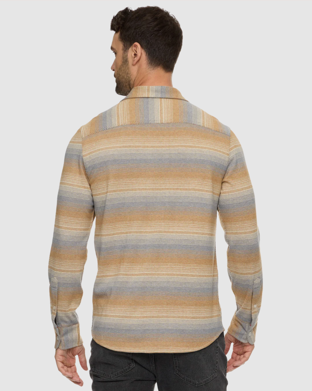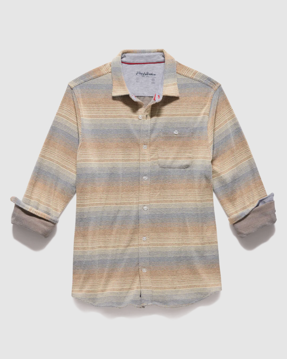 With a blend of extremely soft and stretchy knit performance fabric, you’ll find yourself reaching for this fall favorite all season long. Layer over your favorite tees, or on its own– this endlessly versatile flannel can be worn anytime, anywhere. Contrast fabric inside collar stand, back yoke, front placket, and sleeve cuffs. Single front chest pocket; button closures. Tailored athletic fit.