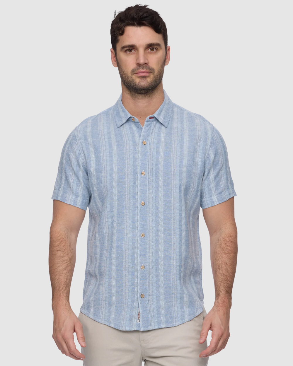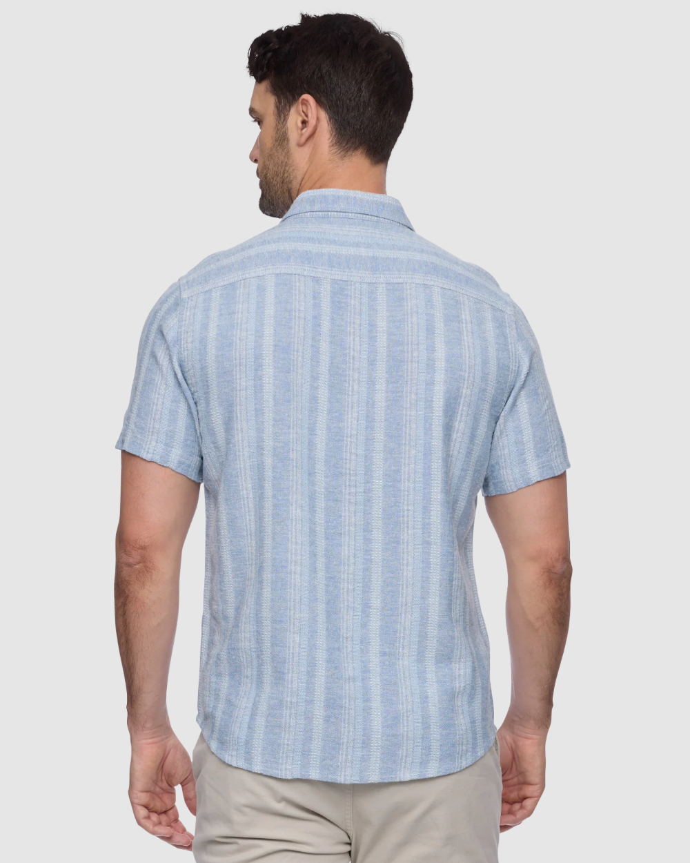 Our Oceanside Linen Shirt is your go-to for all-day comfort and effortless warm-weather style. Made from a lightweight and breathable linen blend fabric that helps you stay cool, you can dress it up or keep it casual depending on the occasion. Contrast chambray fabric inside collar stand, back yoke, front placket, and sleeve cuffs. Button closures.