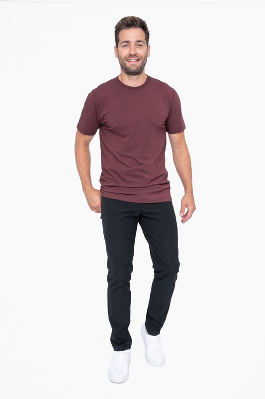 Introducing the pima cotton tee, a refined best-seller. Experience the beloved pima cotton in a tapered silhouette with a 29" body length. The spandex blend rib band ensures neckline longevity, while the pigment dye finish adds a touch of distinction. Model is 6'1" and is wearing a Small / 95% pima cotton, 5% spandex