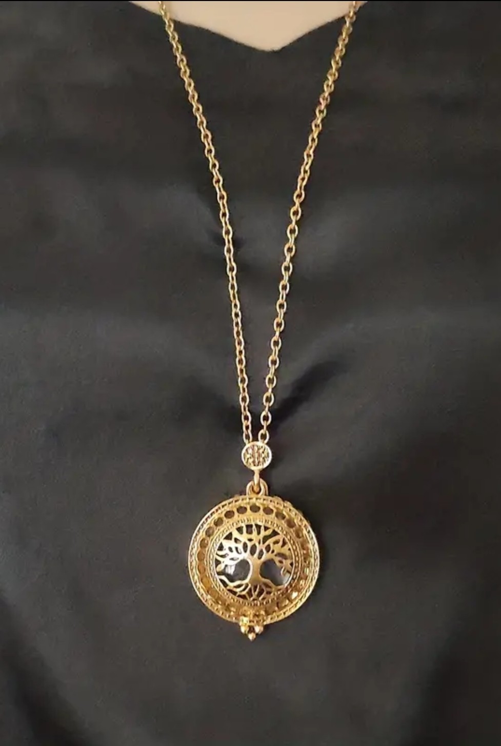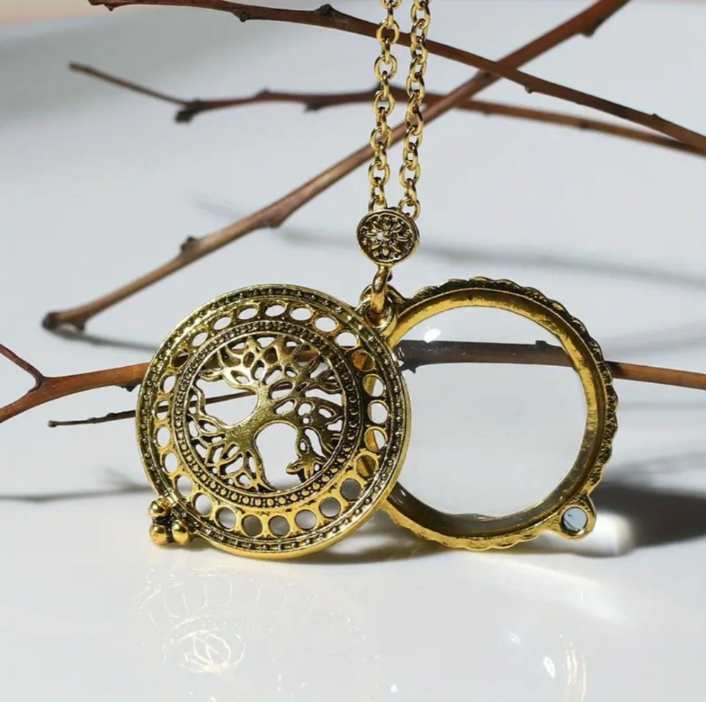 Beautiful necklace opens up to a magnifying glass when needed.