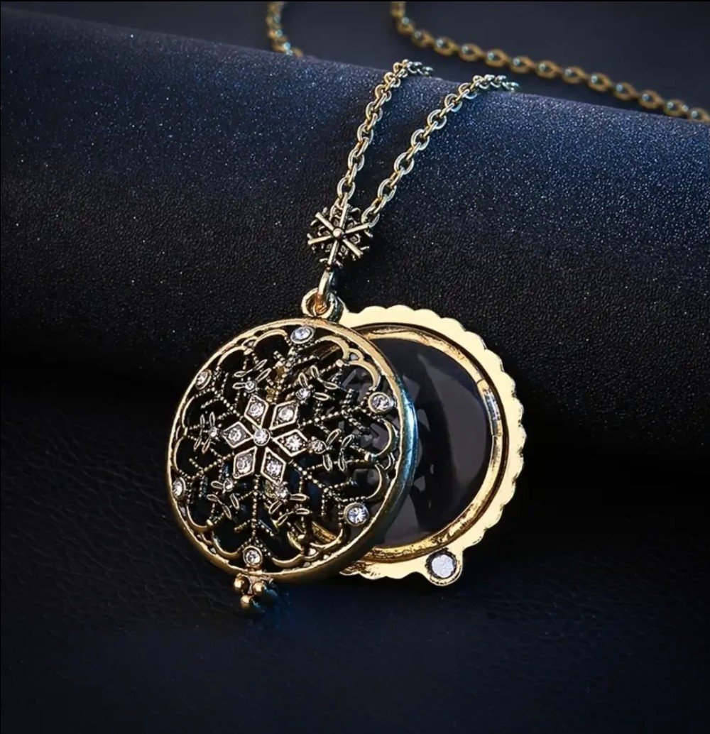 Beautiful necklace opens up to a magnifying glass when needed.