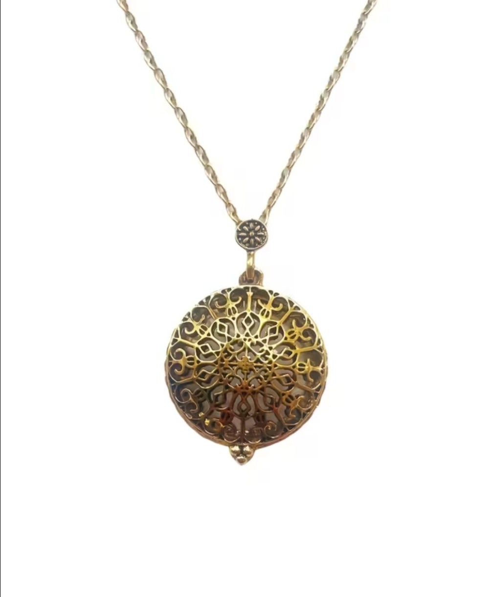 Beautiful necklace opens up to a magnifying glass when needed.