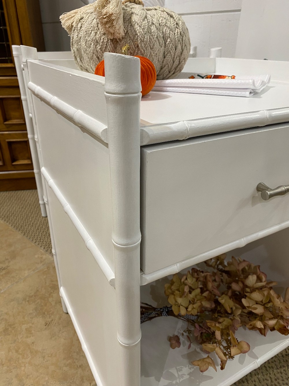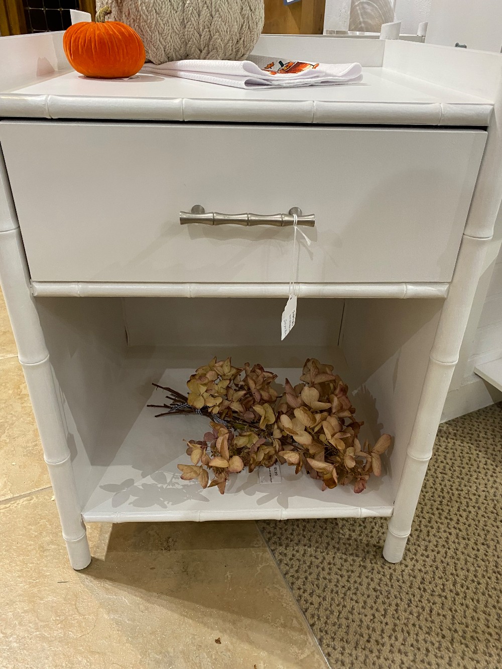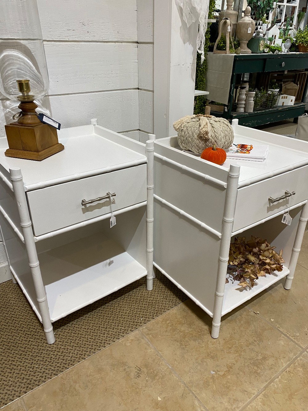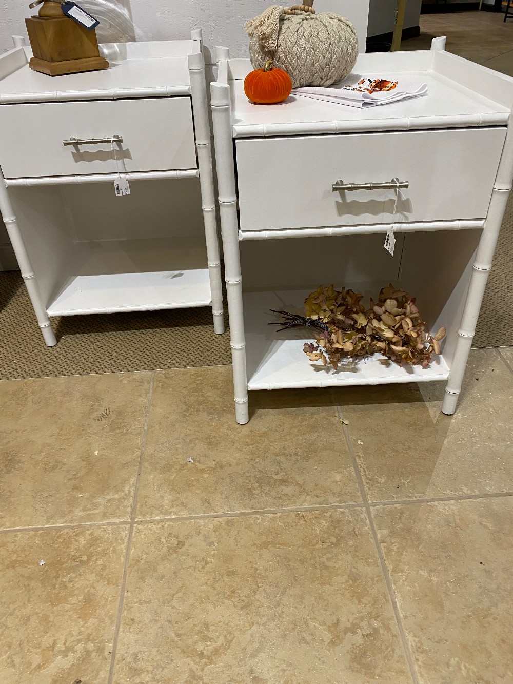 Set of two night stands. One drawer. Available at North Aurora. Delivery available through dolly.com