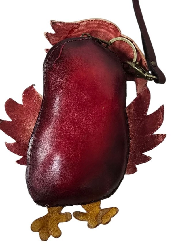 Sturdy zipper opening on the right side. Wristlet strap and key chain attached
