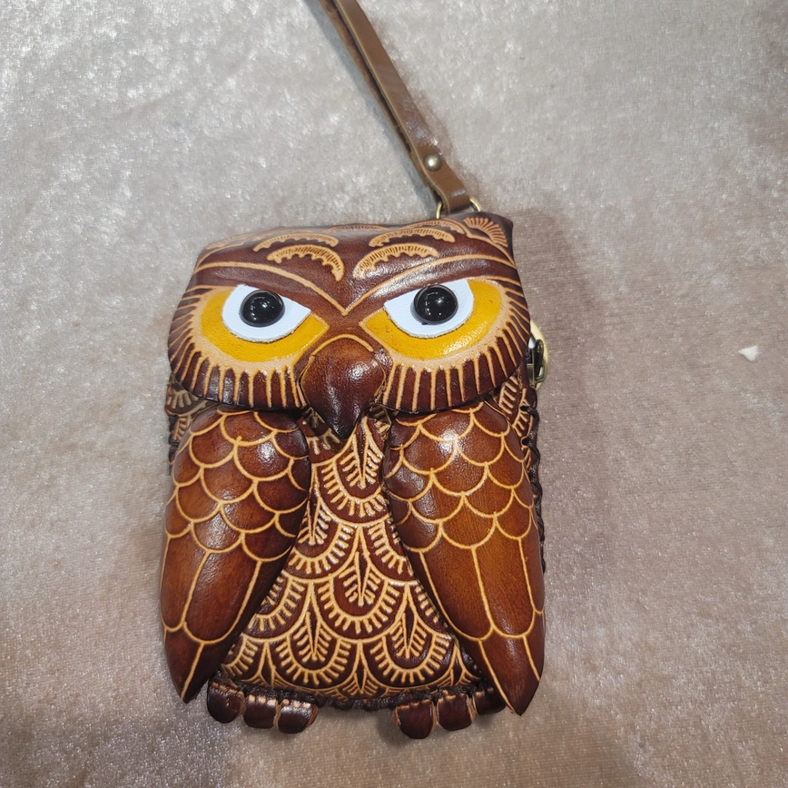 3D leather design and hand tooling. Each Owl Wristlet is meticulously handmade, ensuring each piece is distinct in color and shape.