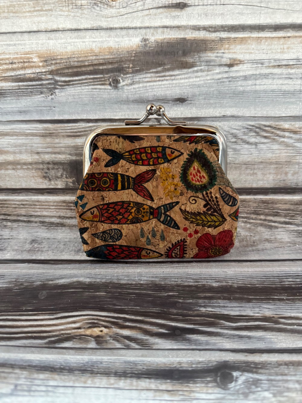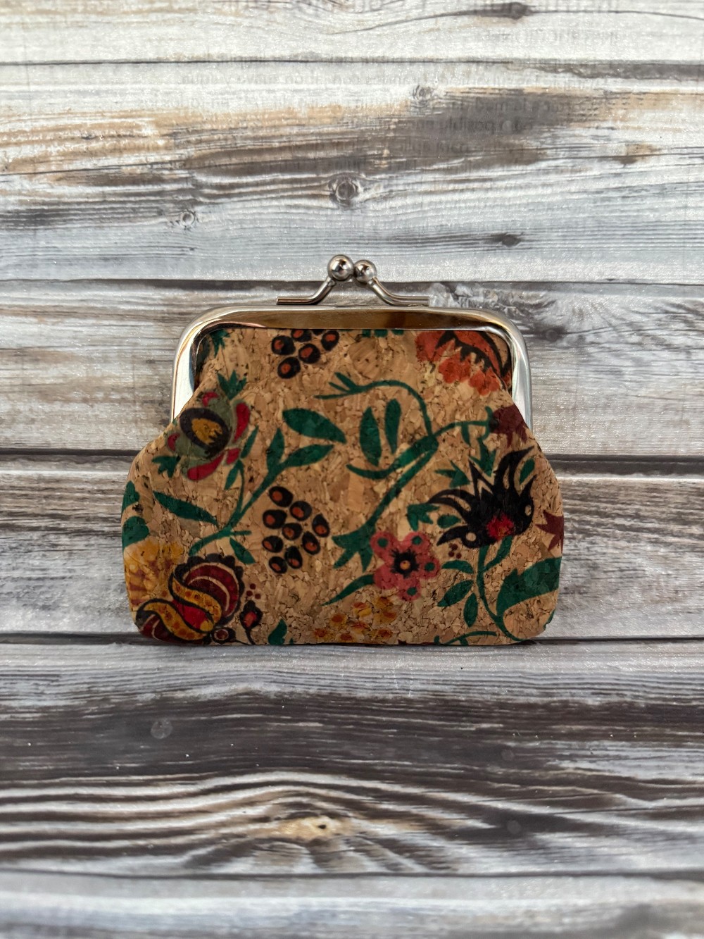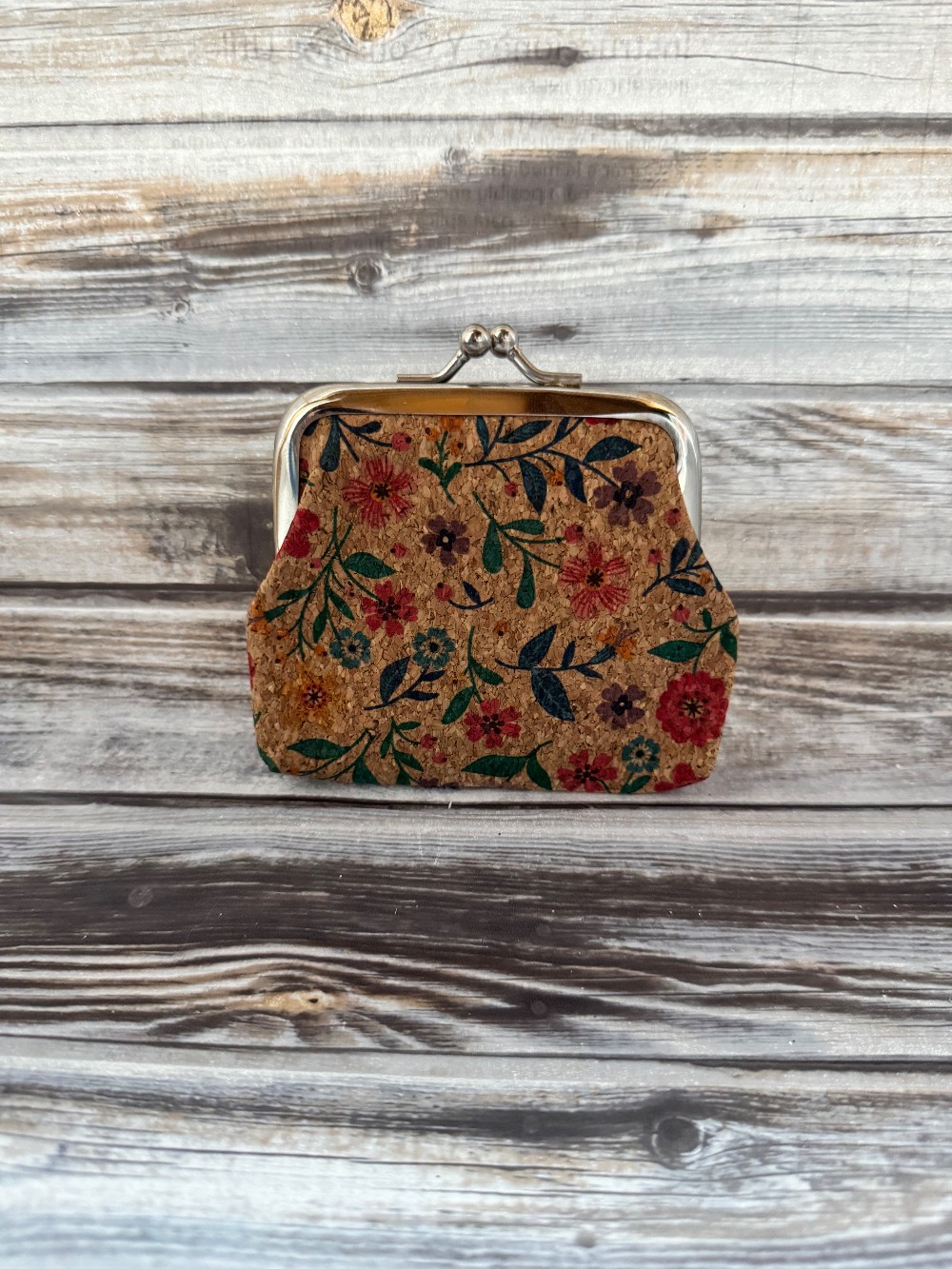 Light weight, lined cork coin bag with clasp (4 inch x 3.5 inch).