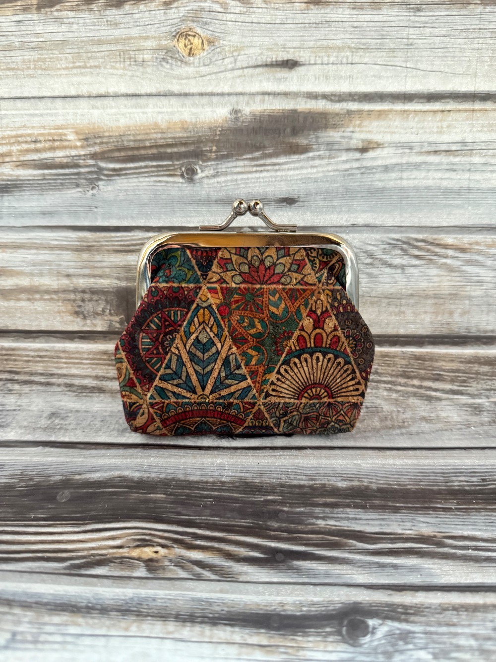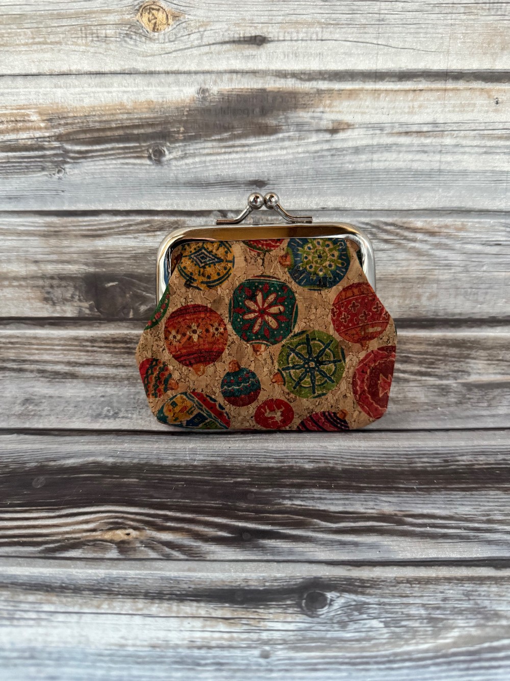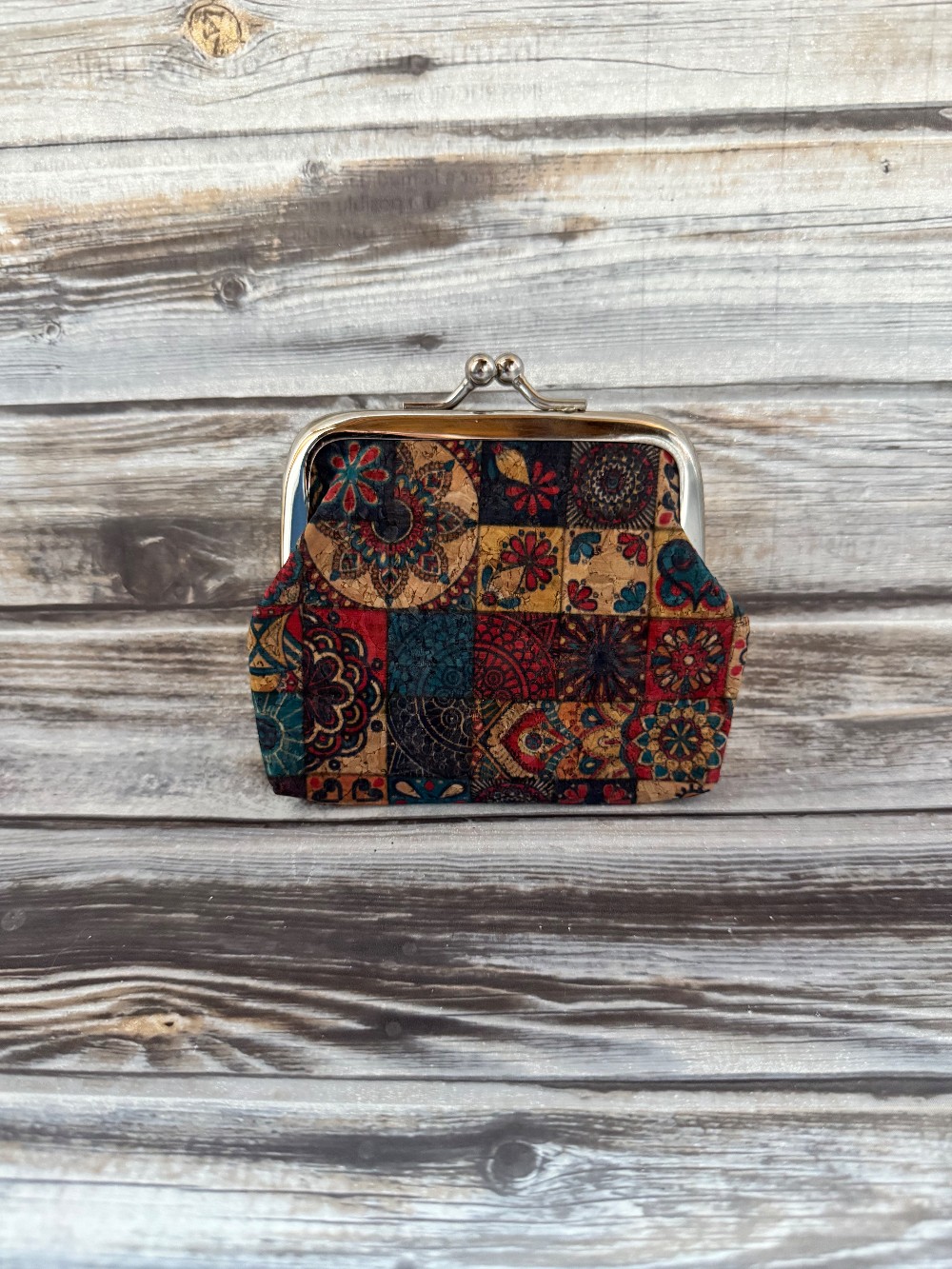 Light weight, lined cork coin bag with clasp (4 inch x 3.5 inch).