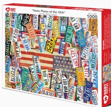 License plates or tags are a sign affixed to a vehicle displaying a series of letters or numbers indicating that the vehicle has been registered within the particular state of their registration. States designed them with the idea of promoting their state. Look for your state's plate in this 24”x 30” 1000 piece puzzle