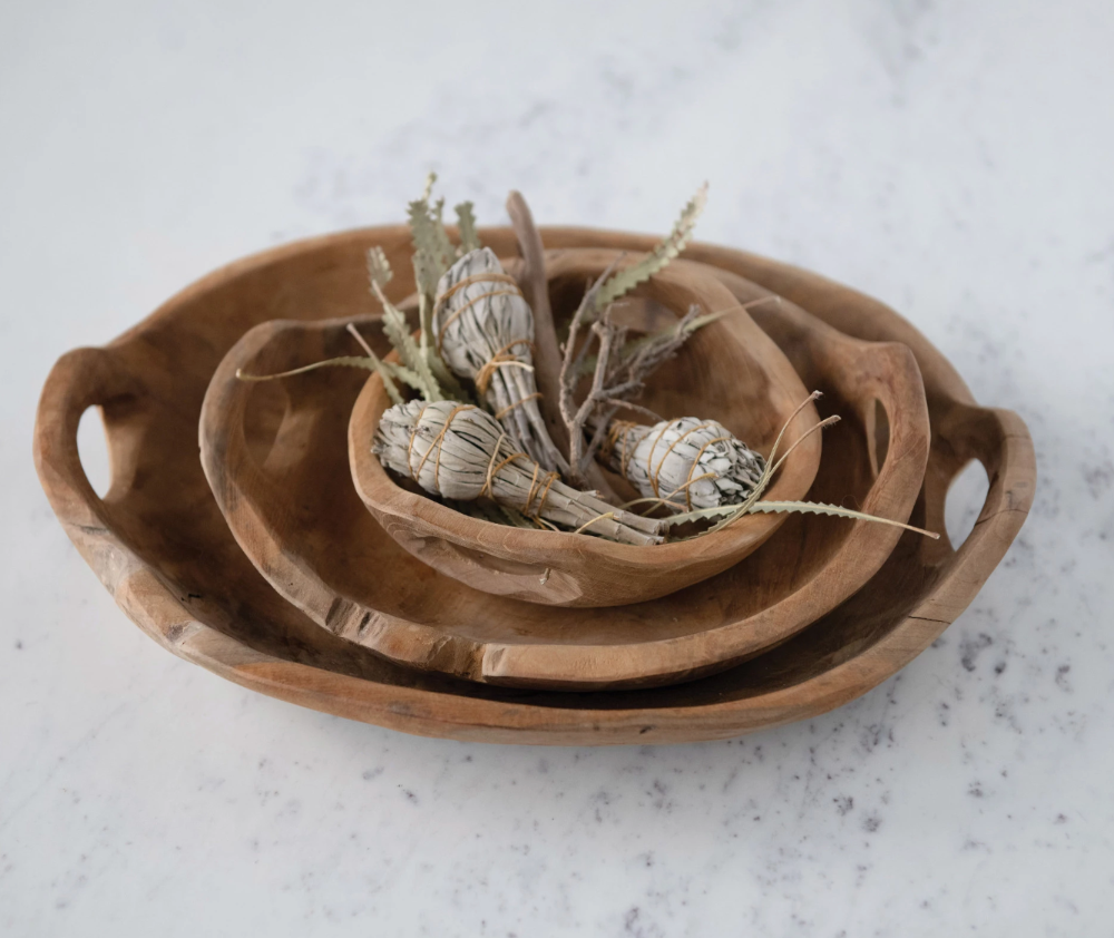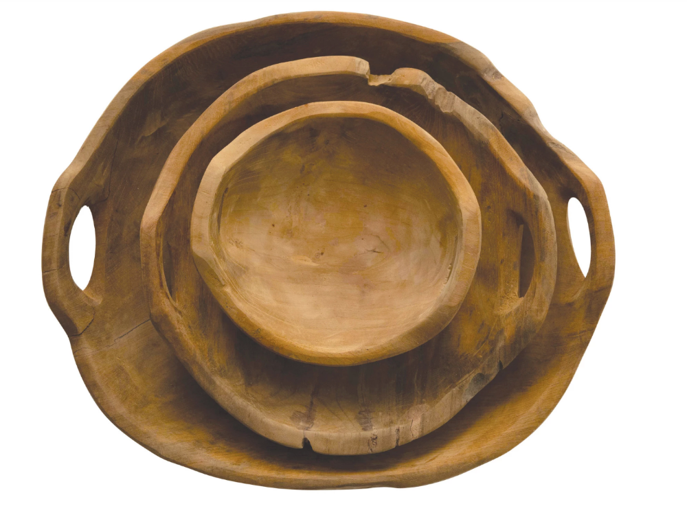 Teakwood Bowls w/ Handles, Natural(Each One Will Vary)