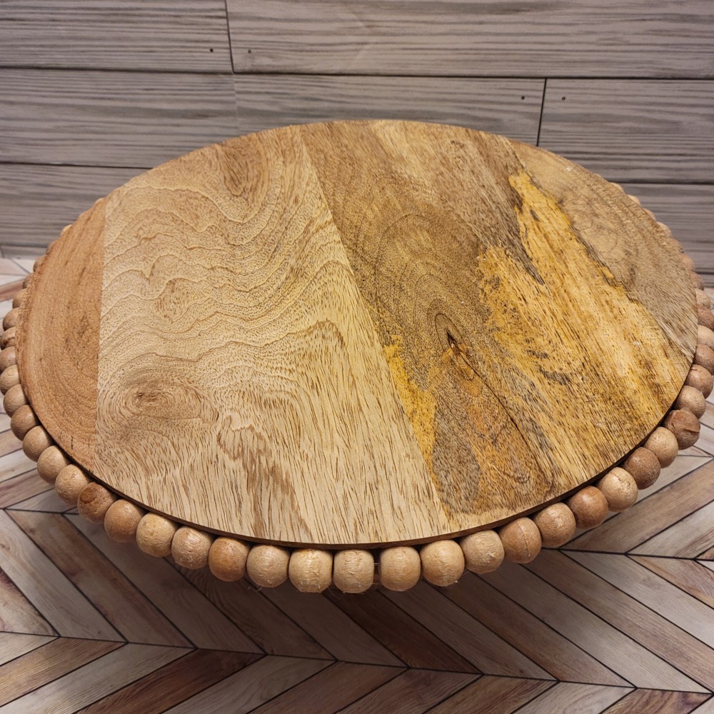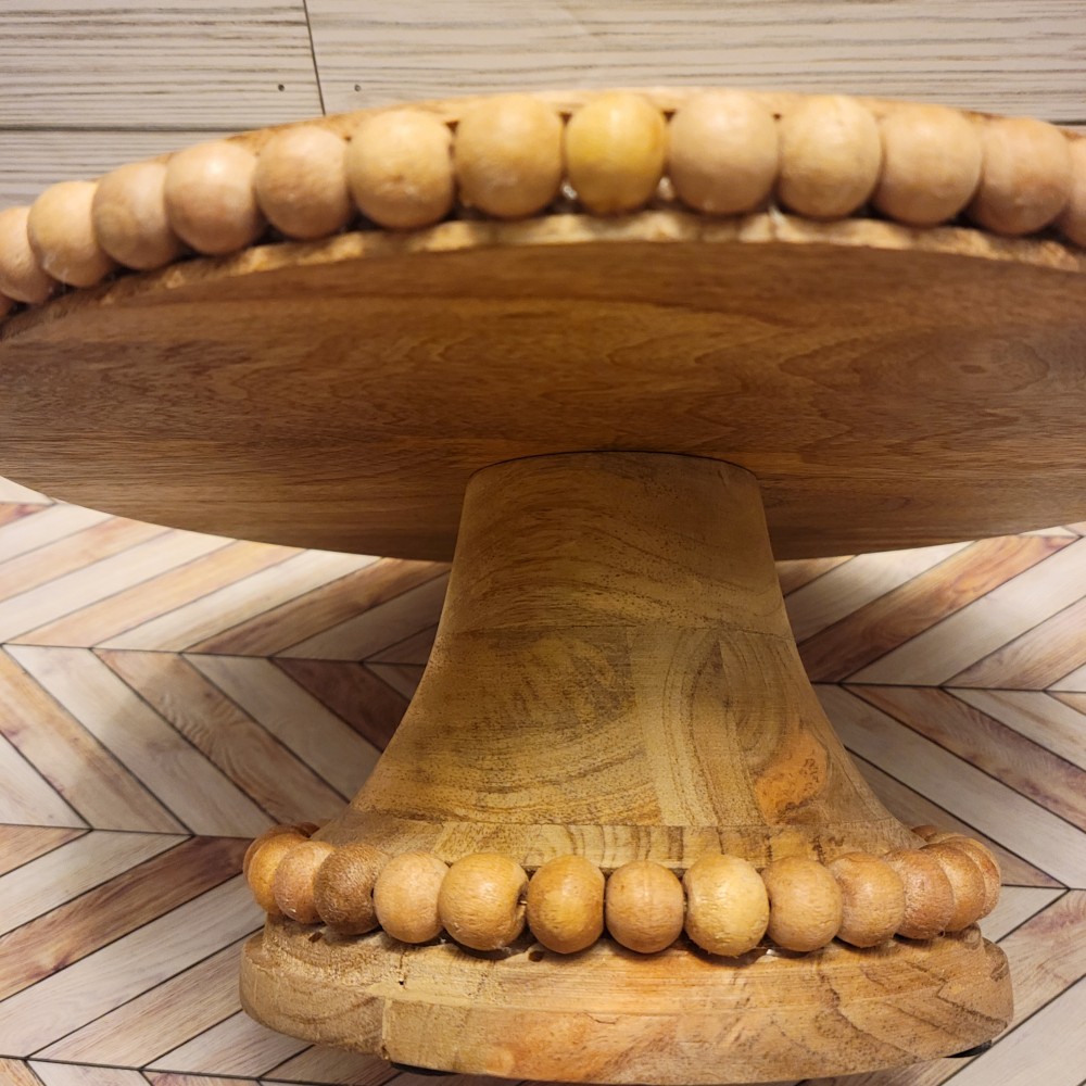 Beaded wood cake stand. A perfect warm accent to any decor.