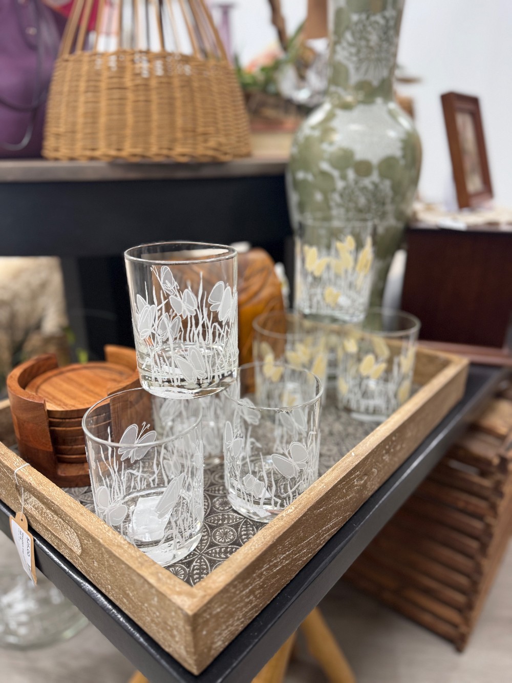 The set is a beautiful representation of Mid century modern design by very desrireable designer, Georges Briard. They would make the perfect addition to your home bar.