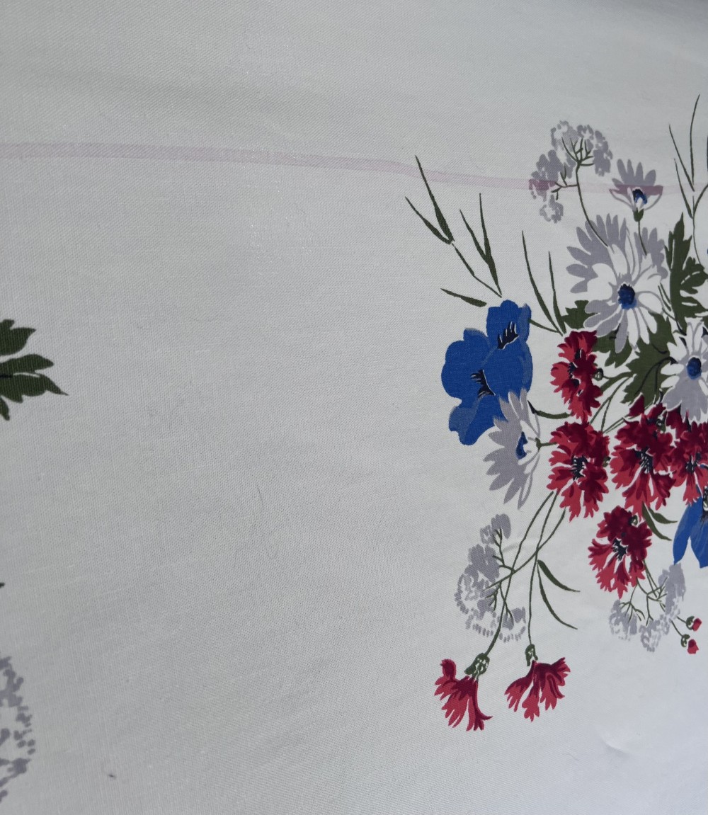 A true vintage tablecloth curated by A Little Bit Of Rust Vintage. This vintage red, white & blue tablecloth is perfect for your 4th of July celebration and all summer long. Tablecloth has been laundered and pressed. Note the red stripe running the length of one end - this is a part of the fabric.