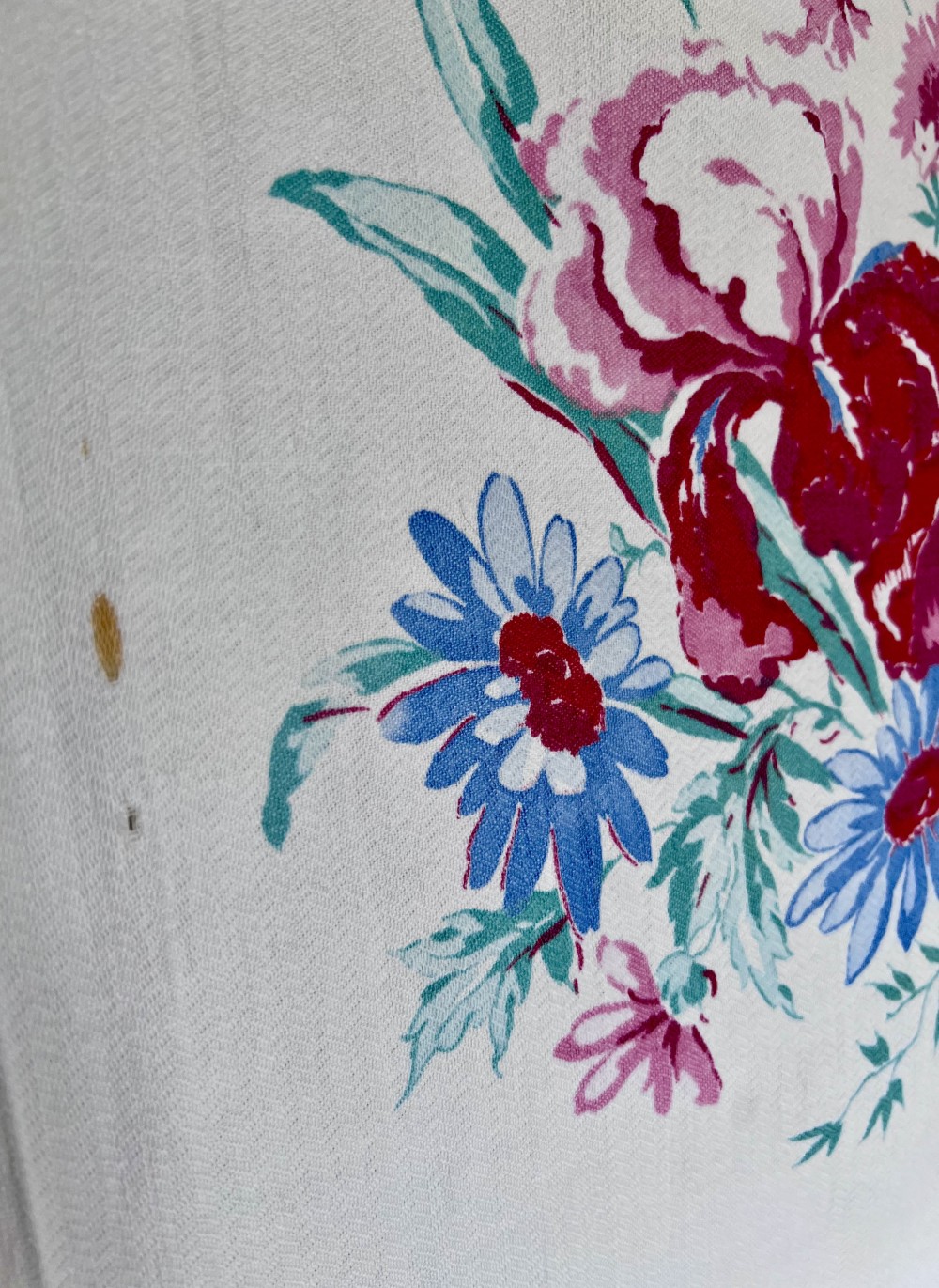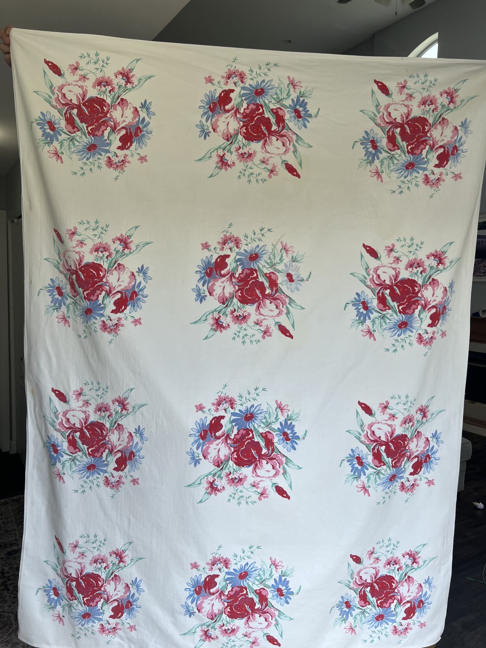 A true vintage tablecloth curated by A Little Bit Of Rust Vintage. This pretty tablecloth is perfect for all of your summer celebrations or a picnic at Cantigny. Tablecloth has been laundered and pressed. Wear is consistent with age - there are several stains on the edges as well as two small holes near one of the corners.
