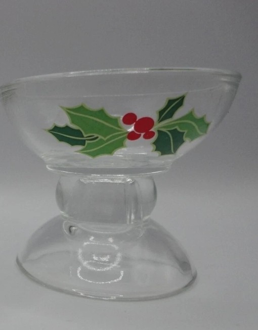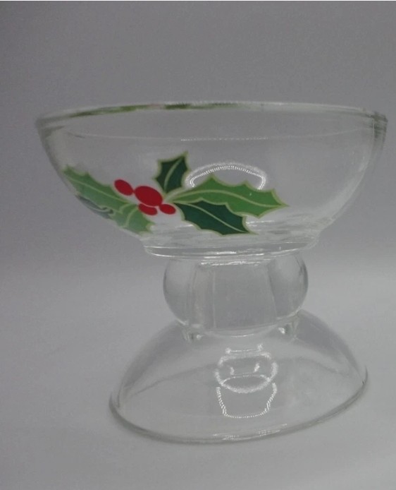 Vintage Avon Holiday Hostess glass candle holder . With beautiful holly berry design. Made 1981 (1pc)