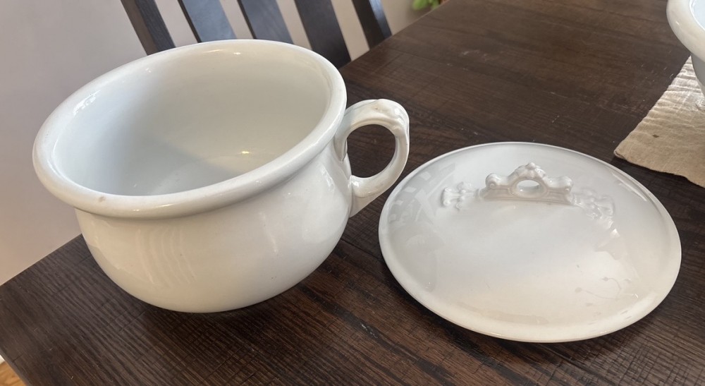 Royal Ironstone pot & lid. Immaculate condition. England Circa 1895-1910. Size: 10 x 4.