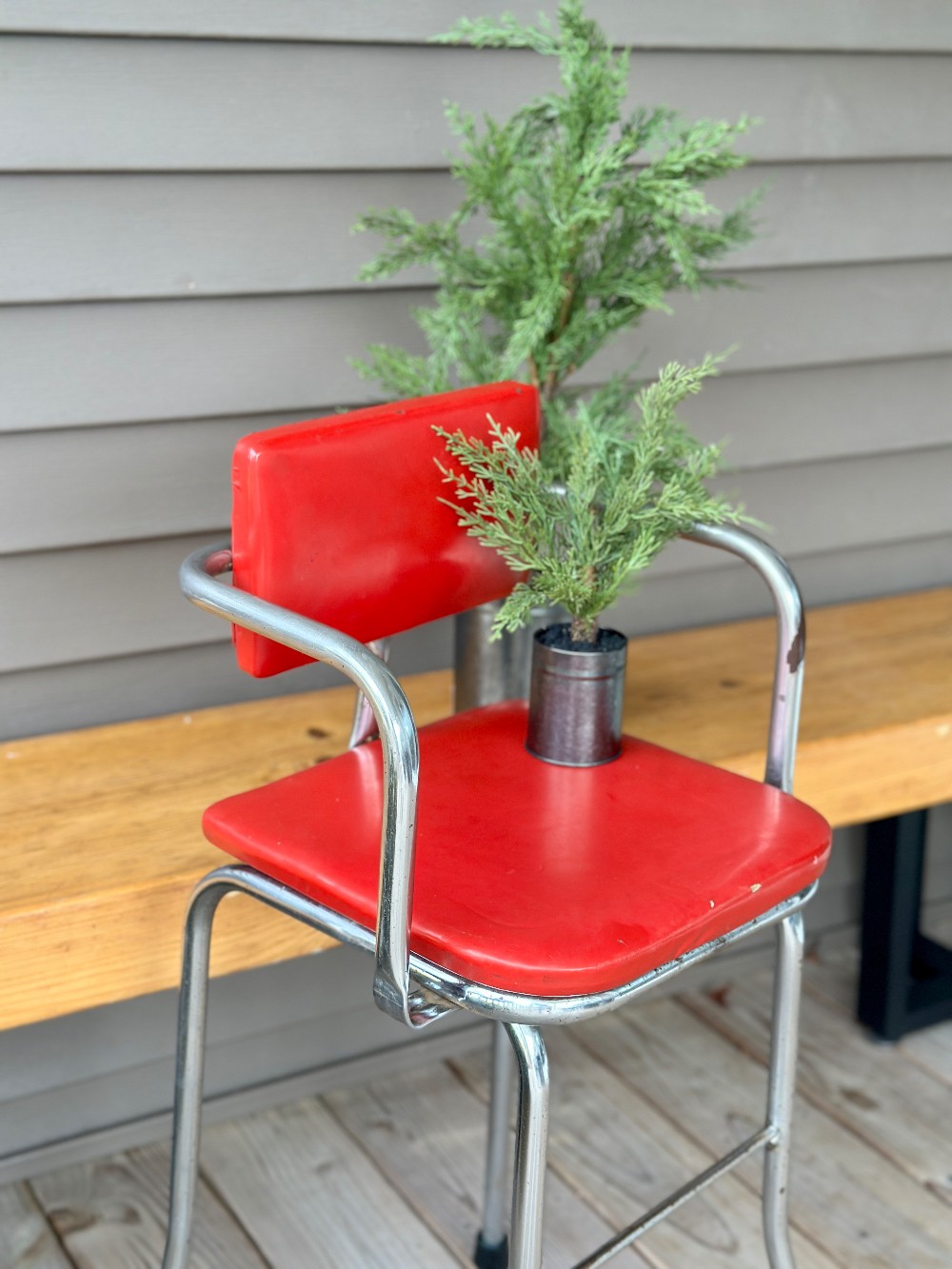 Oh so vintage! Wonderful Vintage Chrome Chair with red padded seat + chair back. Add a piece of festive decor + tuck in a corner for a wonderful additional to your Holiday season!