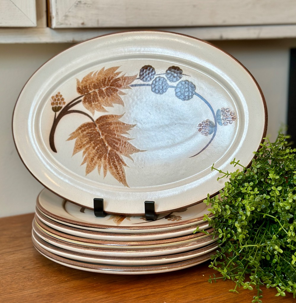 Wonderful rare Vintage Denby Langley Cotswold pattern, Made in England, Pottery Dessert plate. Each in excellent condition. See additional listing for matching Dinner Plates + Oval Serving Platter.