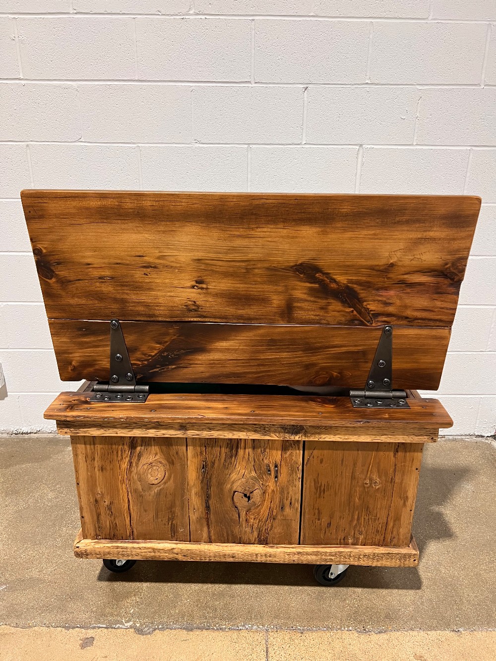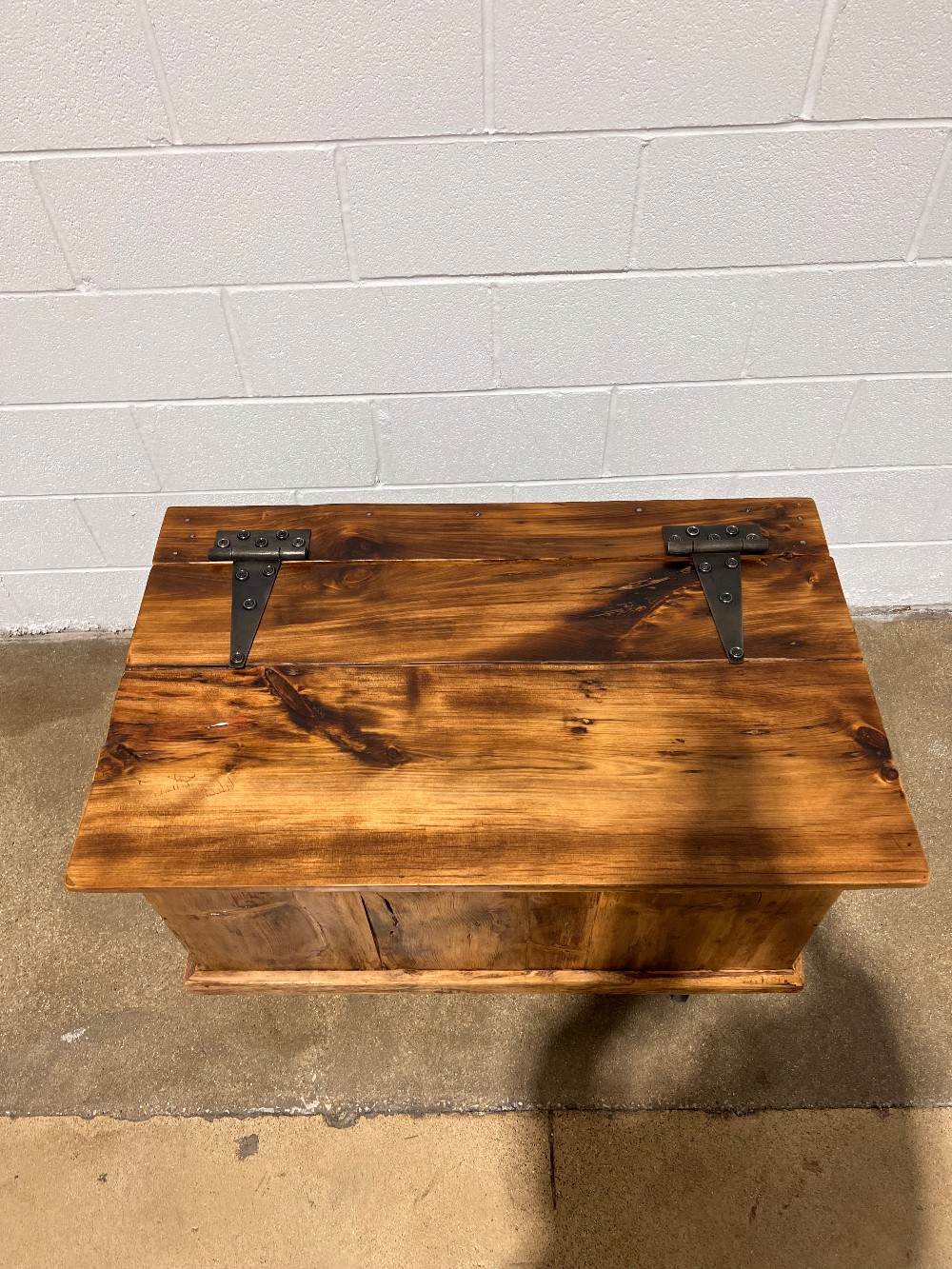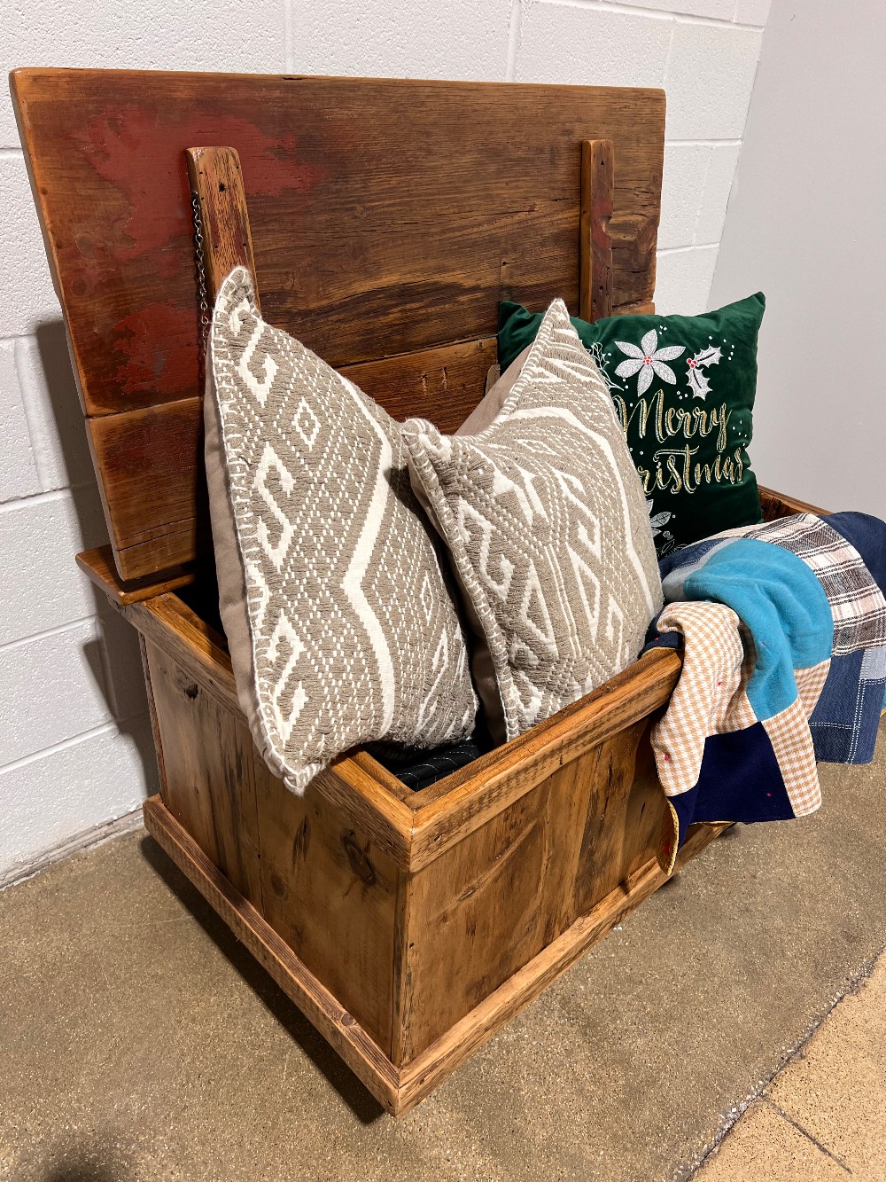 Handmade from upcycled barnwood. Pillows and blankets inside trunk sold SEPERATE. Available at the Carol Stream location - ask for our booth A Little Bit Of Rust Vintage. Pick up in store. Shop daily 10-6.
