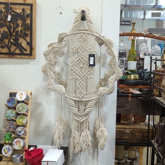 Macrame Zig Zag Ring w/Feathers Hanging Wall Decor 26 X 39White, Cottom