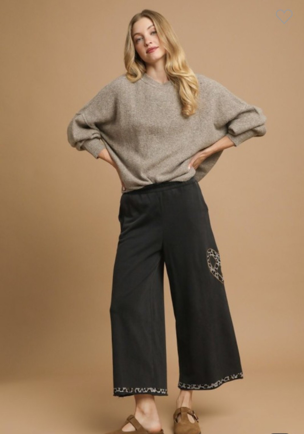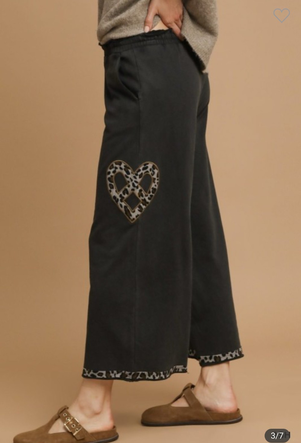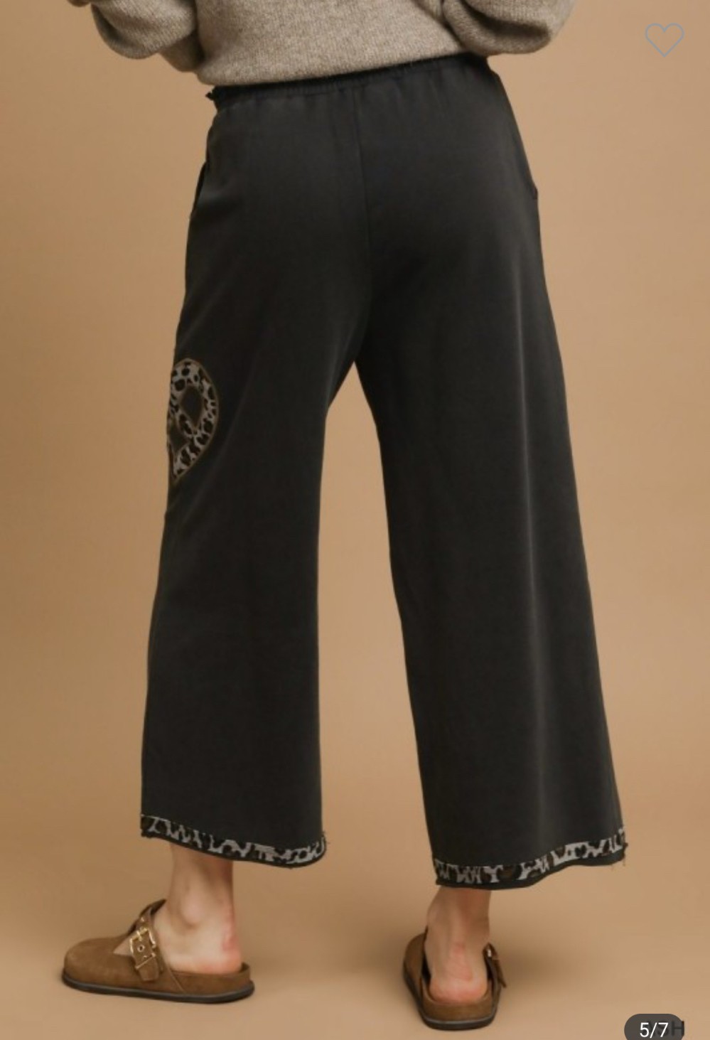 Mineral Wash leopard print appliqué pant- BLACK- CS