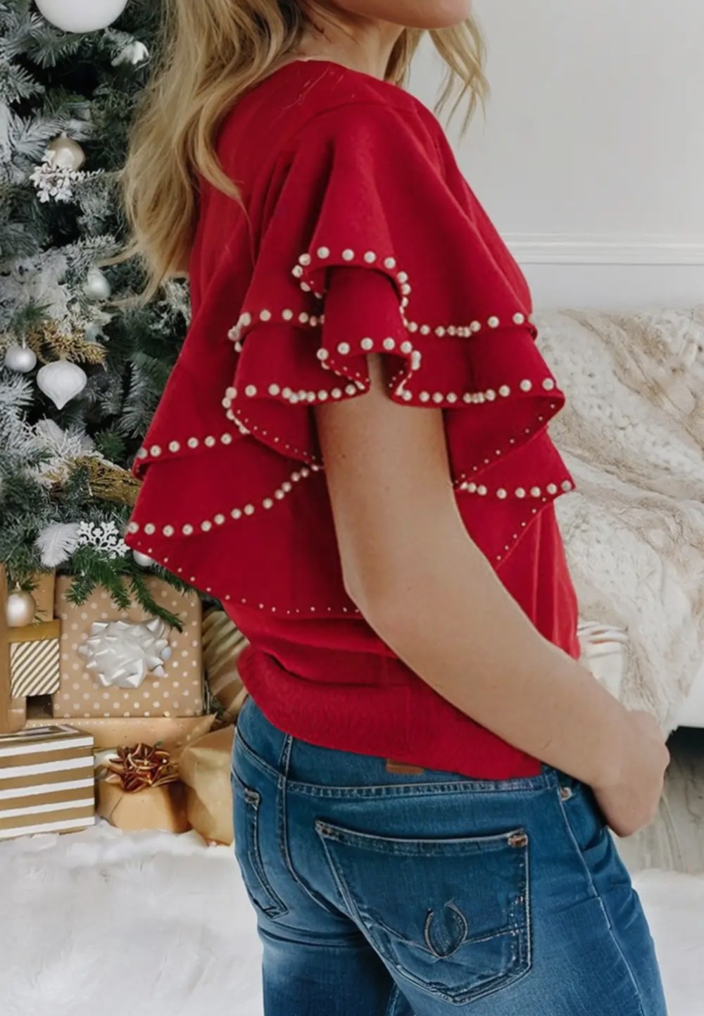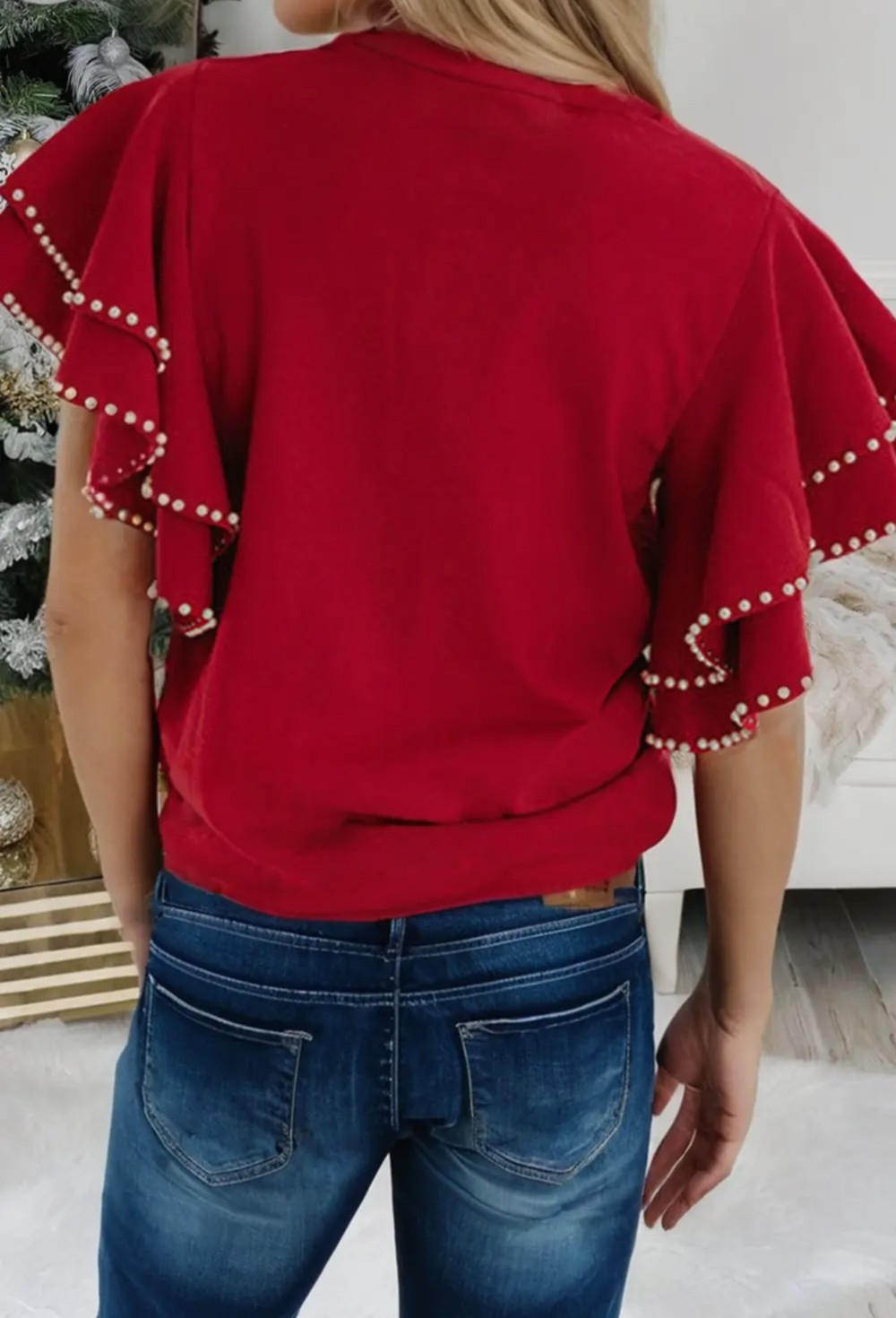 Home / Womens Apparel / Ruffle Sleeve Pearl Embellished
