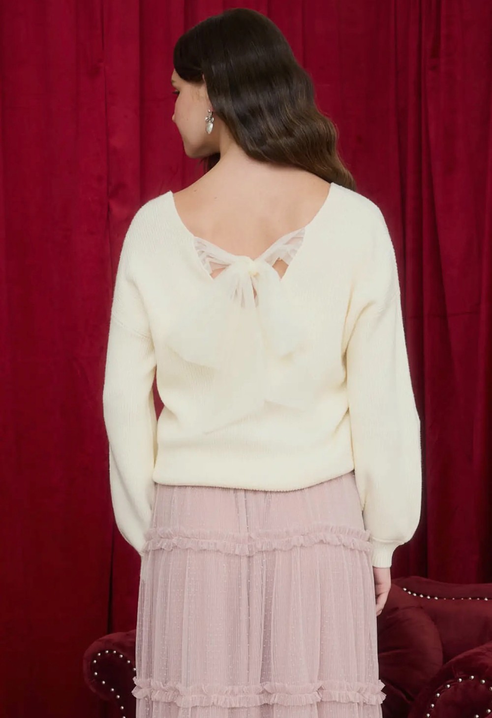 Home / Womens Apparel / V Neck Back Bow Sweater