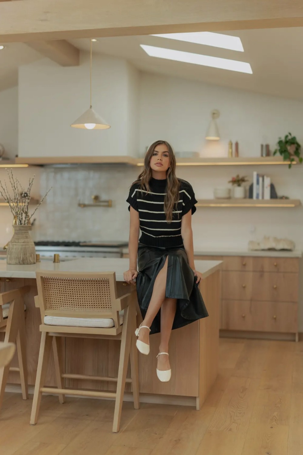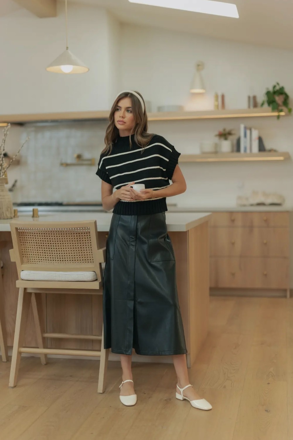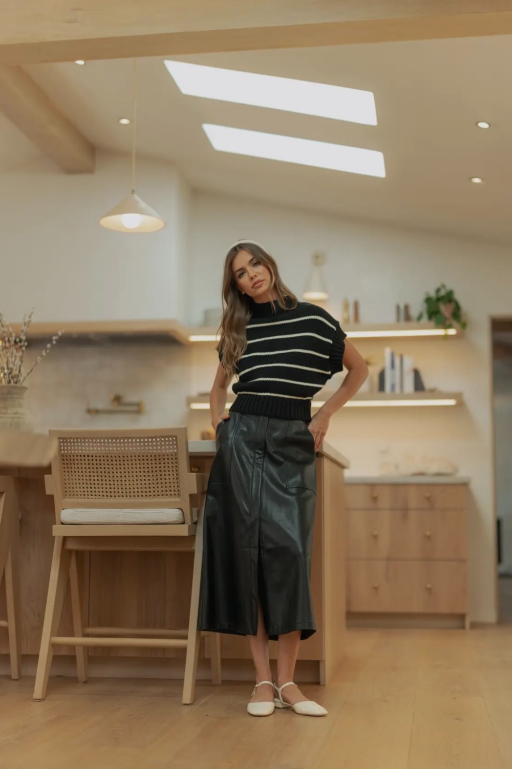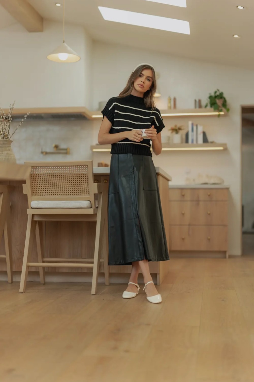 Step into effortless edge with this chic faux leather midi skirt. Designed with a flattering A-line silhouette, it features clean paneling, front pockets, and a smooth, structured finish that elevates any look. The high-rise waist and midi length make it perfect for pairing with cozy knits, sleek bodysuits, or tucked-in tees. Modern, versatile, and luxe—this skirt is the statement piece your wardrobe’s been waiting for /