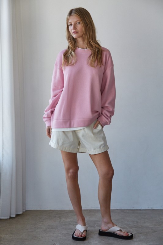 An effortlessly cozy crewneck sweatshirt designed with a relaxed, slightly oversized fit. Made from a soft knit cotton blend, this long sleeve pullover features subtle contrast trim at the neckline and hem for a layered look without the bulk. The easy silhouette makes it perfect for everyday wear, whether styled with denim, or lounge pieces!