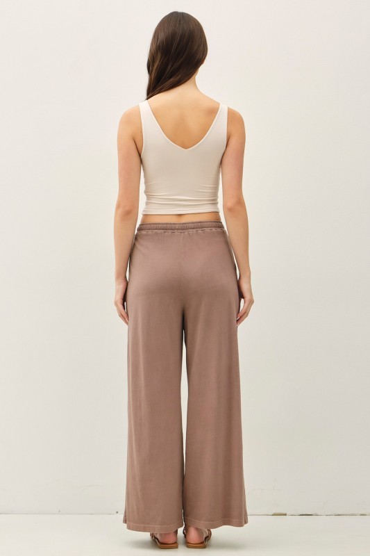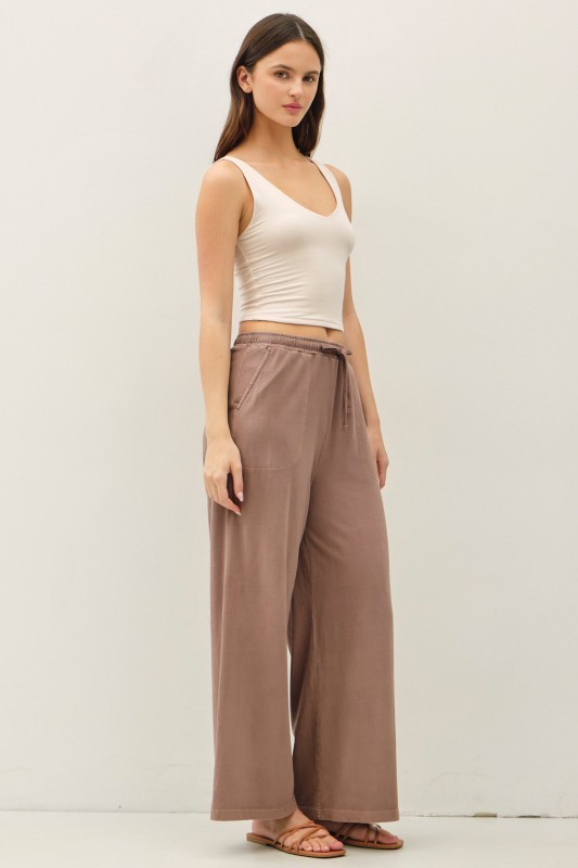 The pants you’ll reach for on repeat. The Garment Dyed Wide Leg Lounge Pants combine the relaxed feel of loungewear with a polished, denim-inspired look. Designed in an ultra-soft, stretchy fabric, these high-rise pants feature a comfortable elastic waistband with adjustable drawstring for the perfect fit. The garment-dyed finish gives them a lived-in, vintage feel, while the wide-leg silhouette creates effortless movement. Finished with front pockets and an easy pull-on design, they’re the definition of comfortable casual — perfect for errands, travel, or everyday wear.