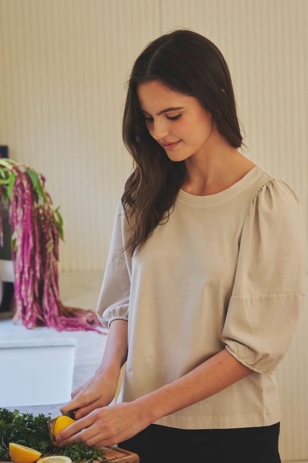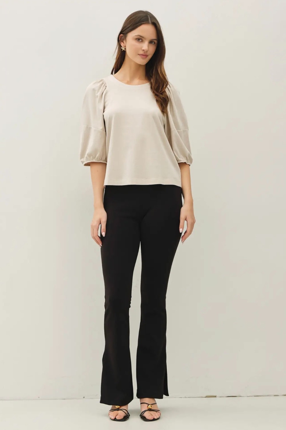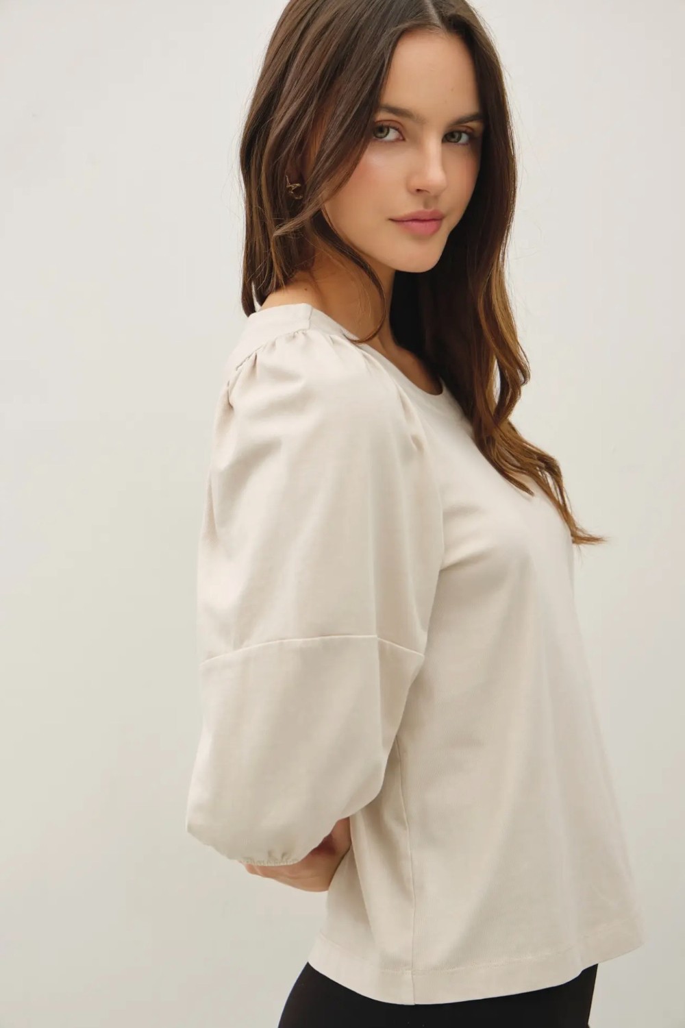 An everyday essential with a refined twist. The Soft Structure Volume Sleeve Top combines ultra-cozy comfort with elevated design details. Crafted in a garment-dyed, soft-wash fabric, this crewneck silhouette feels lived-in from the very first wear. The subtle seam detailing and voluminous sleeves add modern shape, while the clean finish keeps the look polished and versatile. Easy to dress up with trousers or keep casual with denim, this is the kind of elevated basic you’ll reach for on repeat.